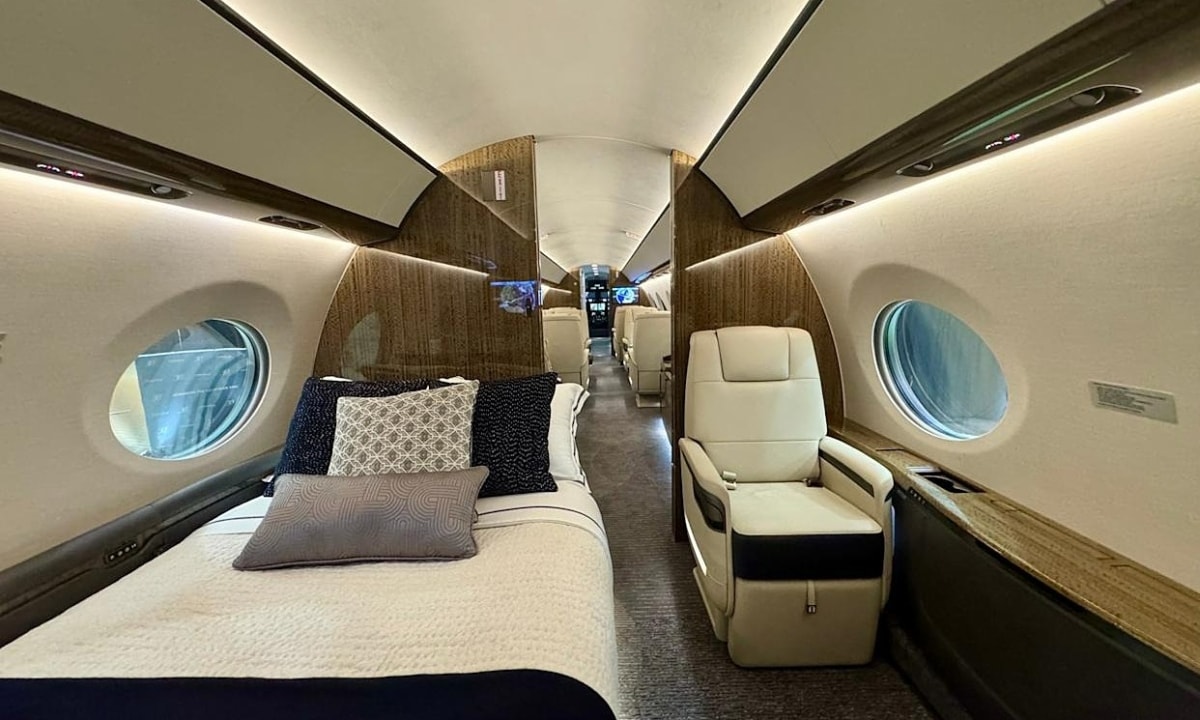 Máy bay G700 được giới siêu giàu yêu thích, với diện tích khoang khoảng 43 m2 gồm phòng ăn, khu giải trí, phòng tắm, lớn hơn nhiều căn hộ ở New York.