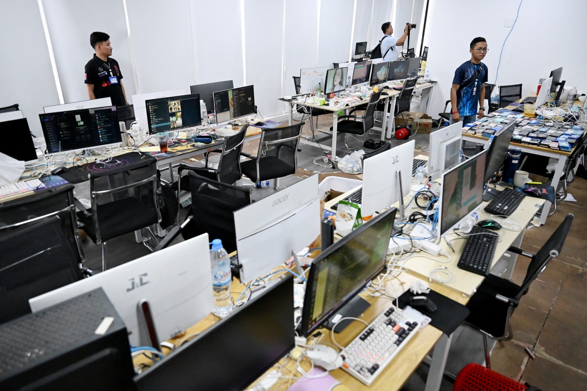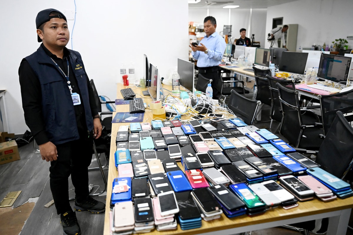 Thiết bị bị tịch thu trong cuộc đột kích trung tâm lừa đảo ở Phnom Penh.