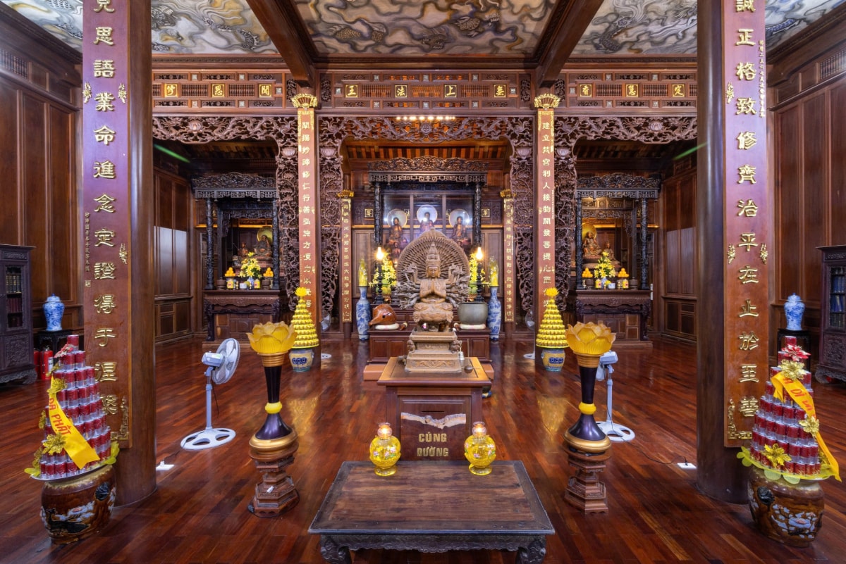 Nguyễn Phong, nhiếp ảnh gia địa phương, cho biết điểm đặc biệt của chùa nằm ở tòa chánh điện Đại Hùng Bảo Điện rộng khoảng 350 m2. Trong đợt trùng tu năm 2018, công trình này được "thần đèn" Nguyễn Văn Cư dịch chuyển nguyên khối ra phía sau, cách vị trí cũ khoảng 18 m.