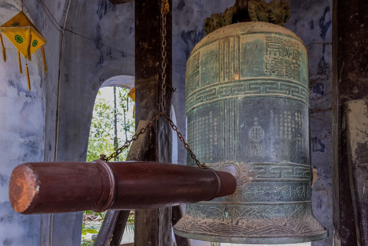 Quả chuông cổ đặt trong lầu lục giác được đúc năm 1846, nặng gần 4 tấn. Chuông được trang trí họa tiết nhị thập bát tú (28 chòm sao), trên năm mặt khắc chữ Hán ghi các bài minh, phân bố đều quanh thân chuông.
