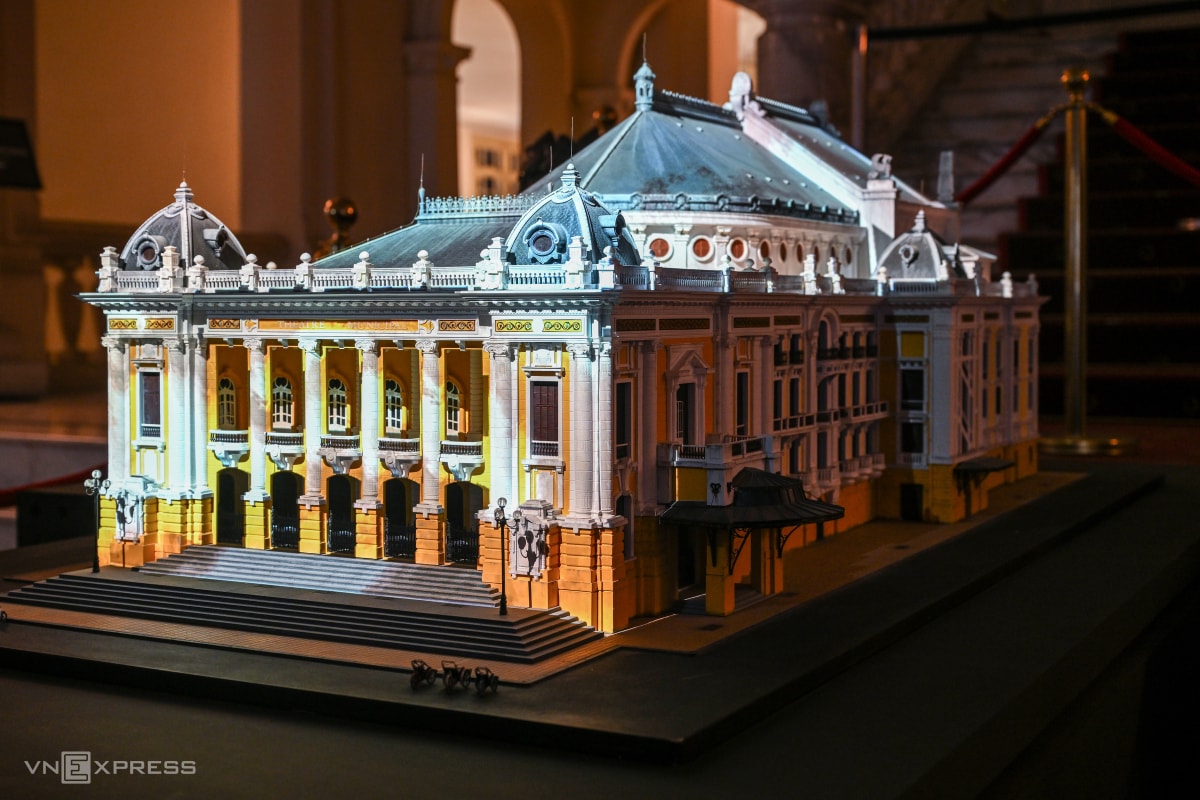 Đơn vị tổ chức trưng bày các chi tiết kiến trúc từ viên gạch đến hệ thống đèn treo tường có tuổi đời hơn một thế kỷ, tại tầng 1. Khu vực trung tâm đặt mô hình Nhà hát Lớn thu nhỏ, được thực hiện dựa trên bản thiết kế của tác giả Nguyễn Thiện Chương.