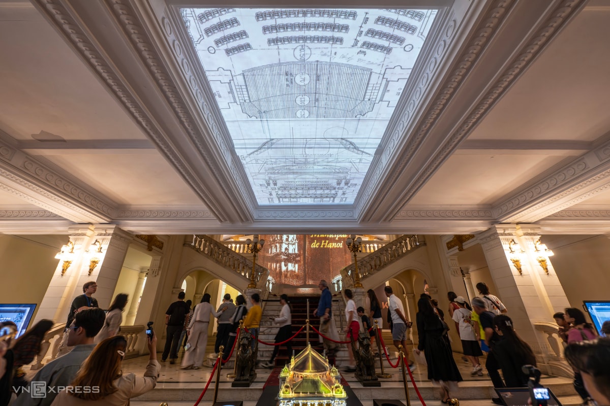Triển lãm 115 năm bên trong Nhà hát Lớn Hà Nội đưa du khách khám phá di sản bằng công nghệ ánh sáng 3D Mapping, trước khi nơi này đóng cửa hai năm để trùng tu.