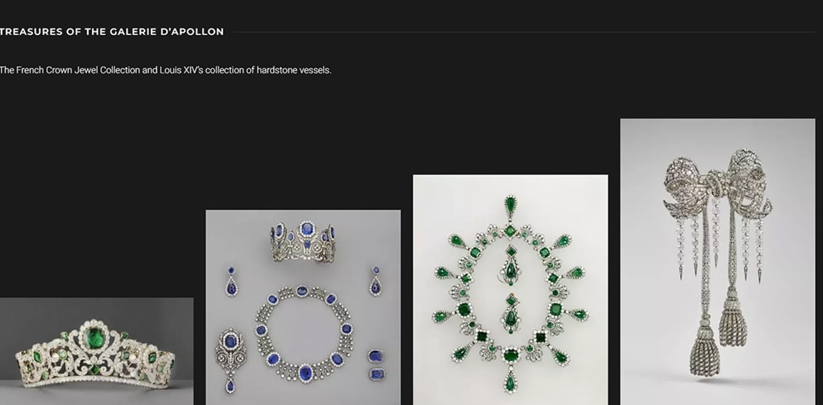 Bảo tàng Louvre hiện lưu giữ hơn 33.000 tác phẩm nghệ thuật, thu hút khoảng 30.000 khách mỗi ngày. Phòng trưng bày Apollo là một trong những không gian biểu tượng của Louvre, nơi trưng bày các bảo vật quốc gia, trong đó có Bộ trang sức Hoàng gia Pháp.