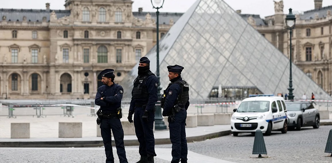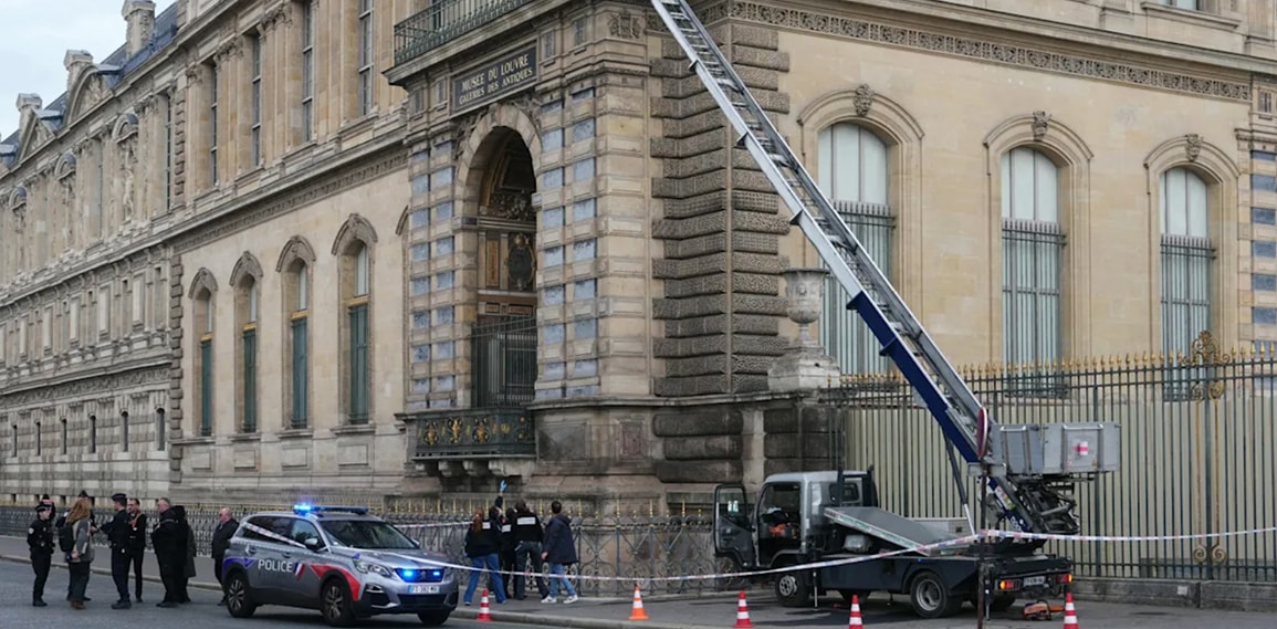 Sáng 19/10, nhóm cướp mang theo cưa máy cỡ nhỏ, đi xe máy tiếp cận bảo tàng Louvre từ phía bờ sông Seine của tòa nhà - nơi có một số đoạn đang được tu sửa. Nhóm cướp dùng thang máy chở hàng đi thẳng đến phòng trưng bày Apollo, phá cửa kính bảo vệ, hai người đột nhập vào bên trong, tên còn lại ở ngoài trông chừng.