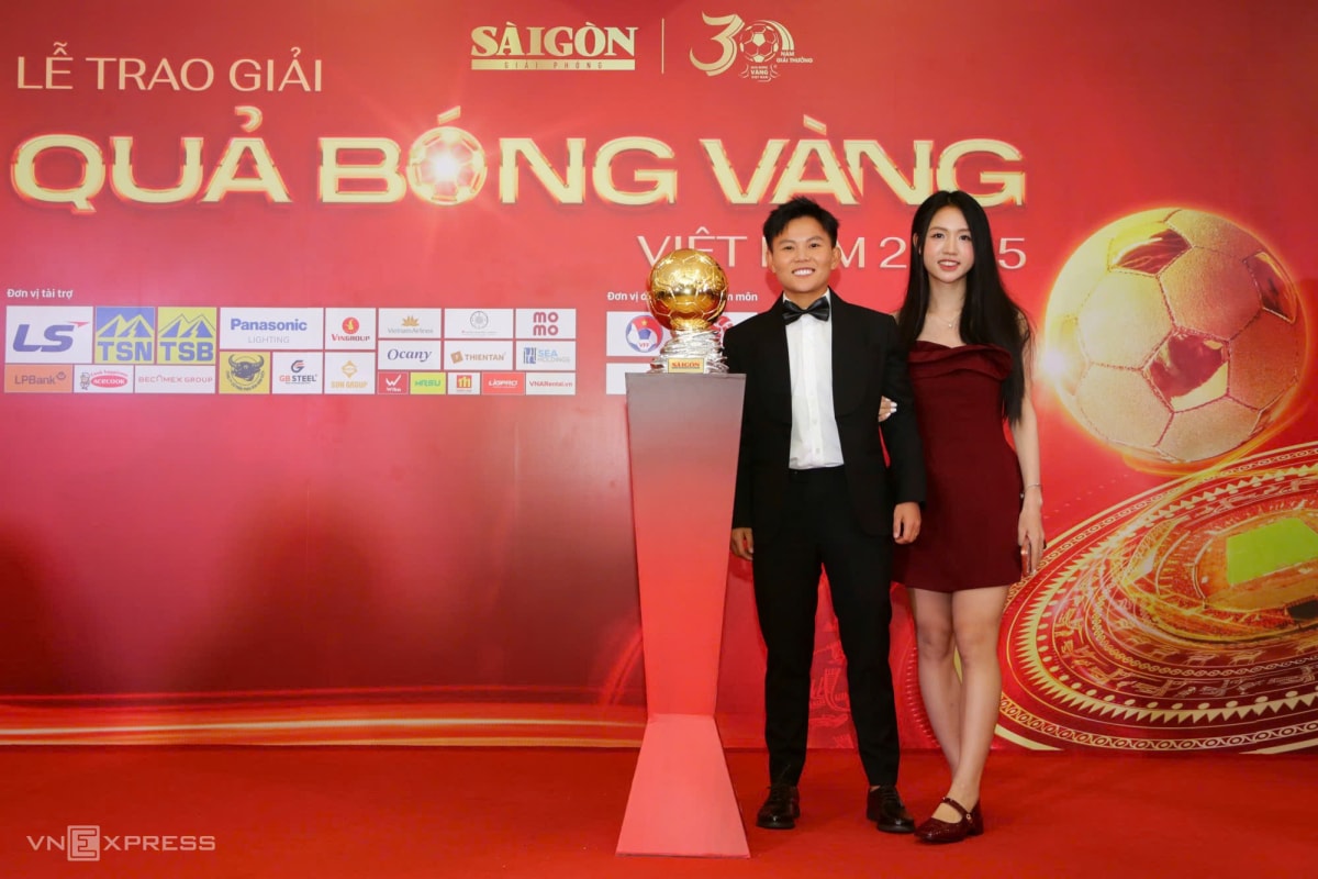 Tiền vệ Nguyễn Thị Bích Thuỳ và Trần Thị Duyên có nhiều cử chỉ thân mật, luôn chụp ảnh cùng nhau khi dự lễ trao giải Quả bóng Vàng Việt Nam 2025, tối 26/12.