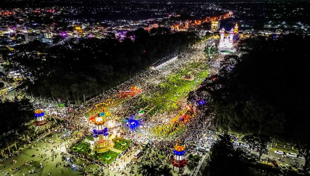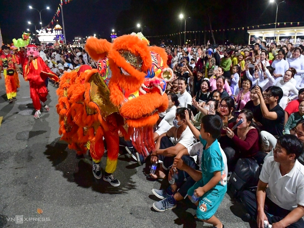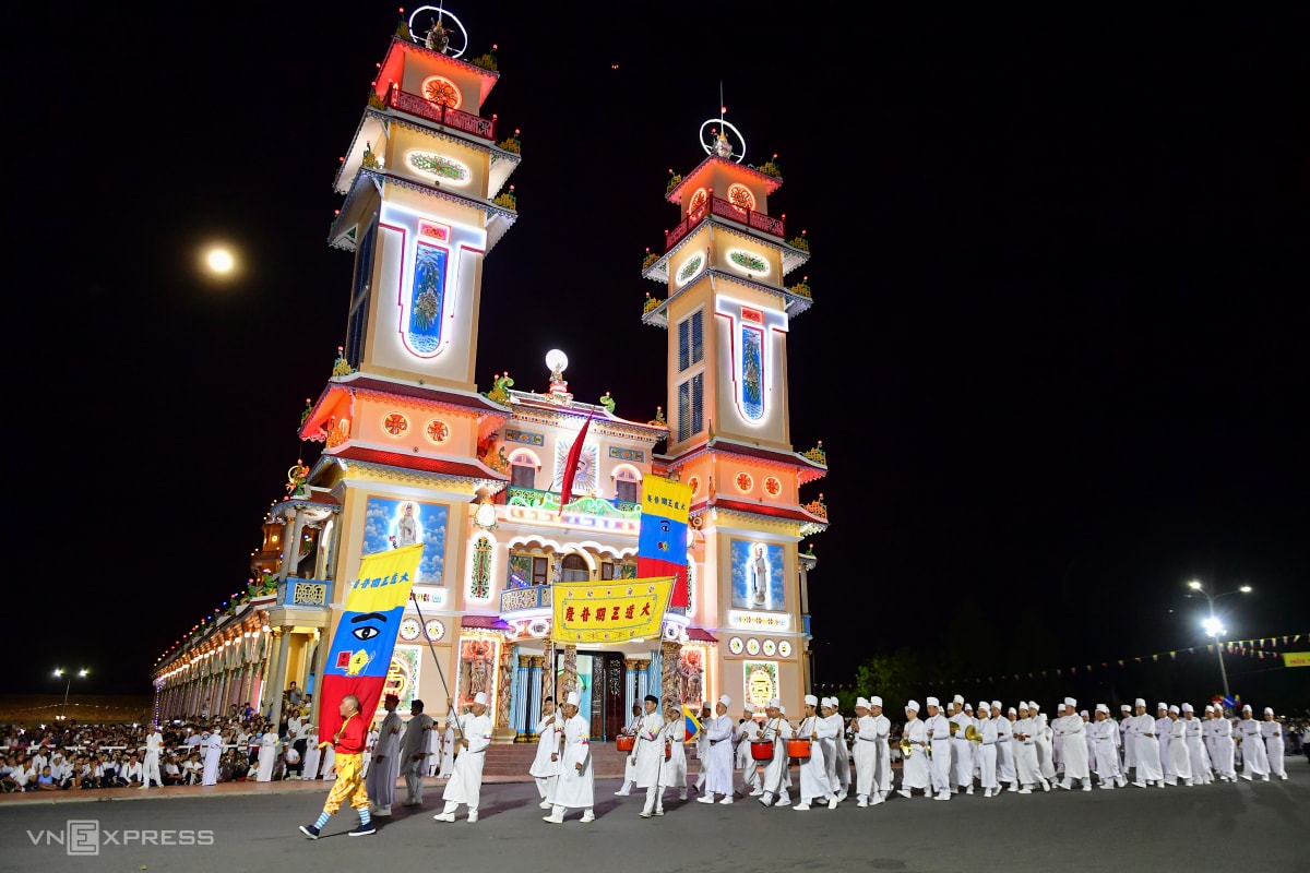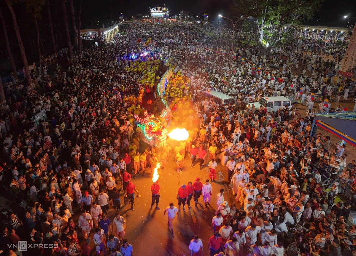 Hơn 100.000 người từ khắp cả nước đổ về Toà thánh Tây Ninh chiêm ngưỡng màn múa rồng lửa dịp đại lễ lần thứ 100 của đạo Cao Đài.