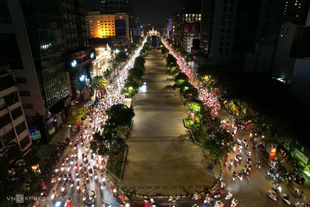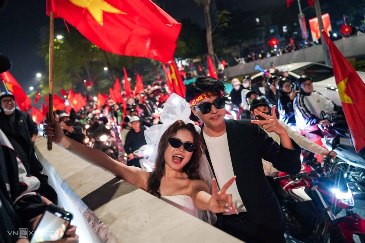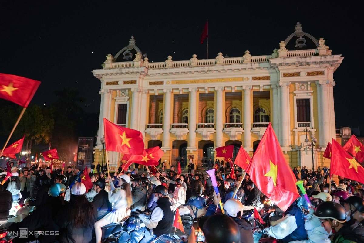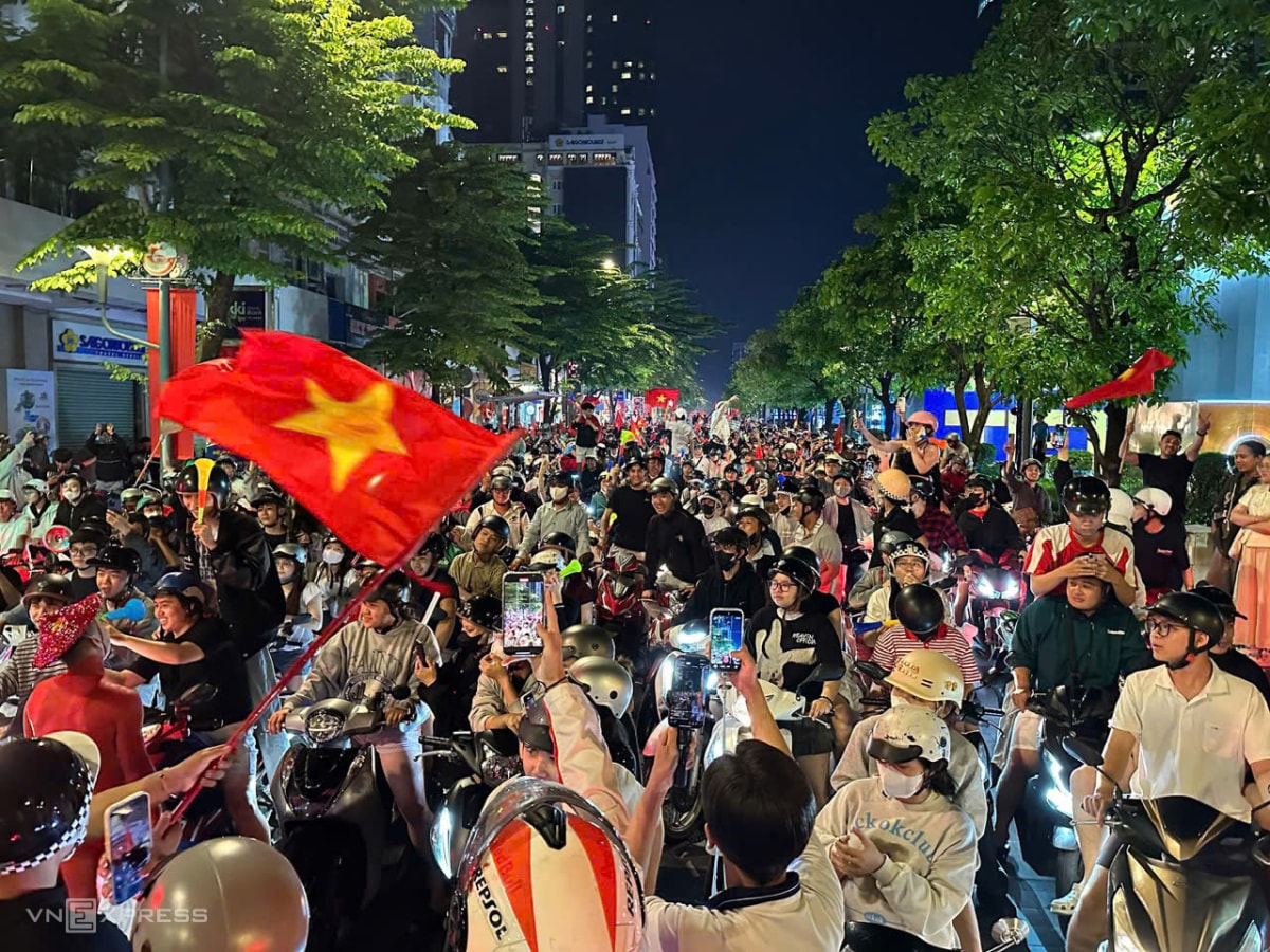 Dù trận đấu Việt Nam – UAE kết thúc vào rạng sáng, người dân Hà Nội và TP HCM vẫn mang cờ đỏ sao vàng đổ ra các tuyến đường trung tâm, ăn mừng đội tuyển lần thứ hai vào bán kết U23 châu Á.