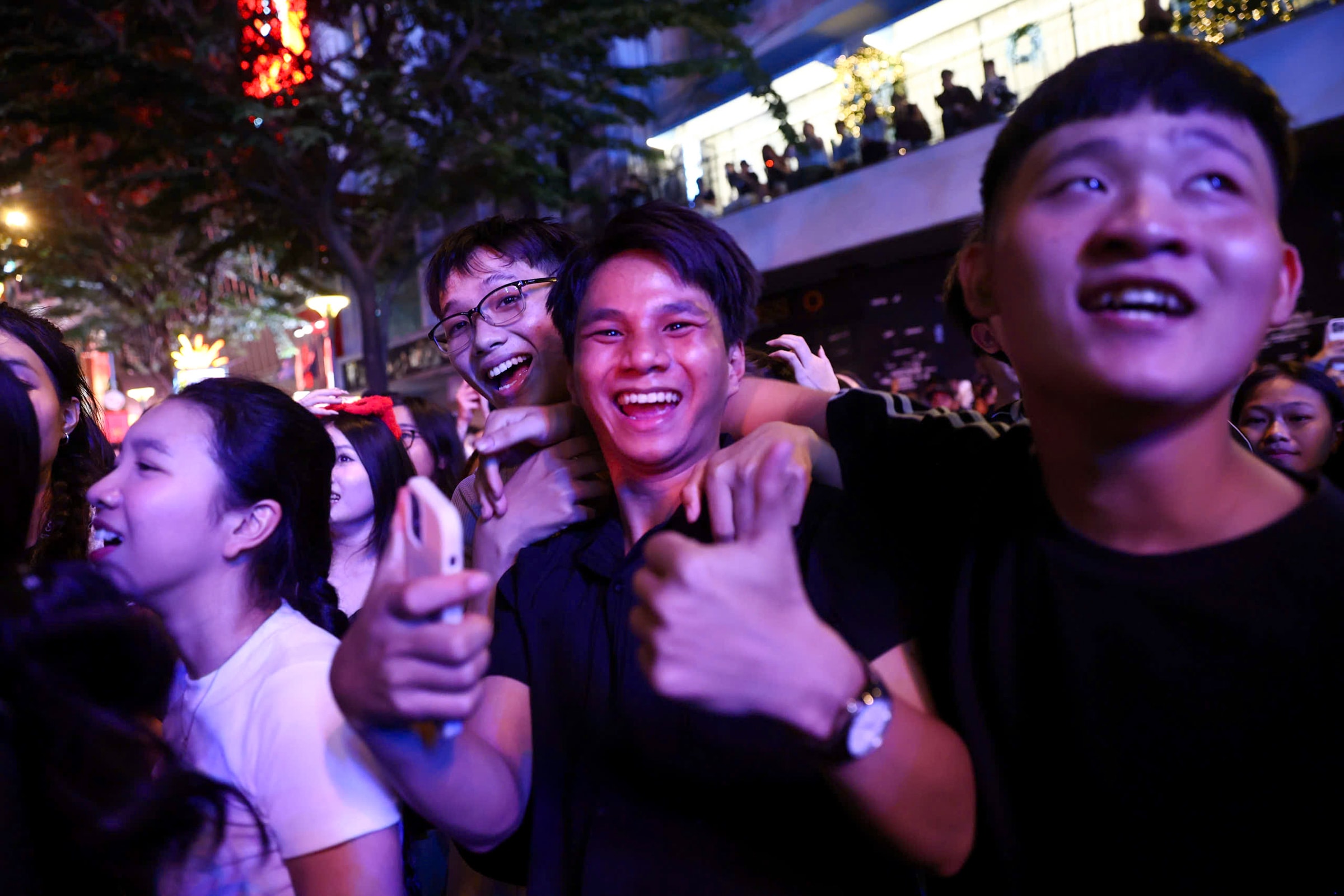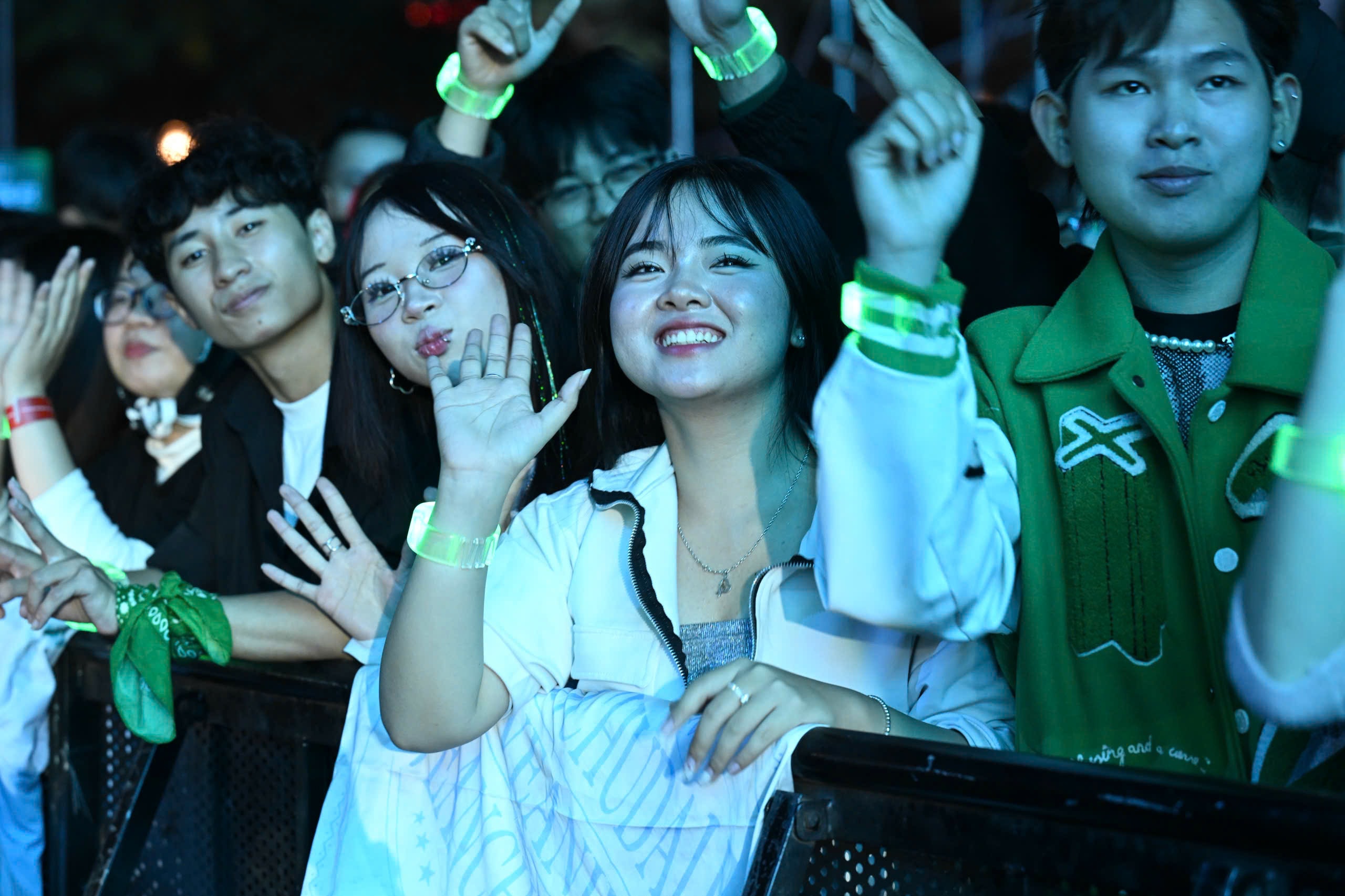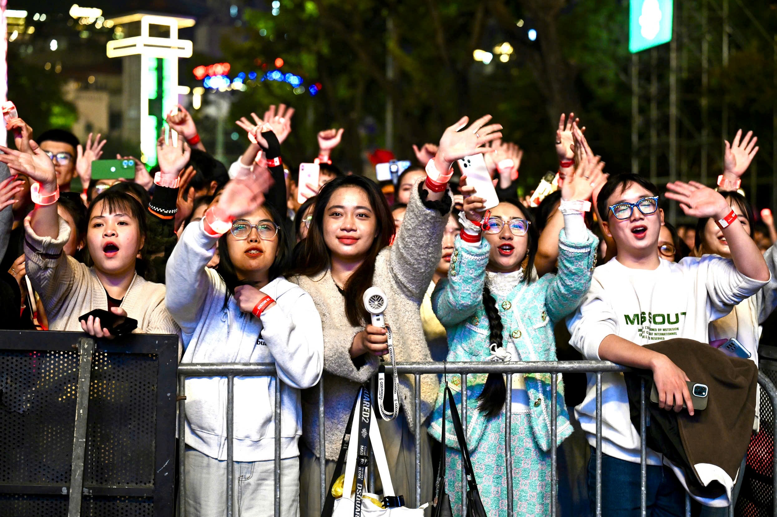 Bên dưới sân khấu, nhiều bạn trẻ nhún nhảy hòa theo tiếng nhạc sôi động, chờ đợi giây phút sang năm mới.