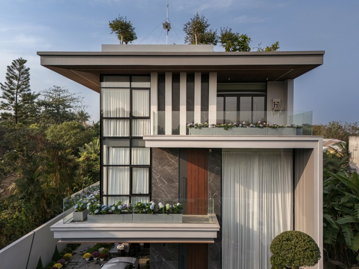 Không gian sống được thiết kế mở, kết nối với cảnh quan sân vườn, đưa trải nghiệm nghỉ dưỡng vào từng tầng sinh hoạt.