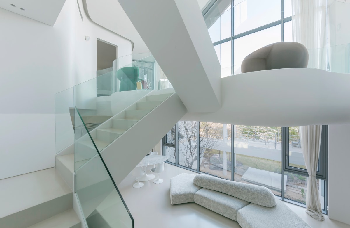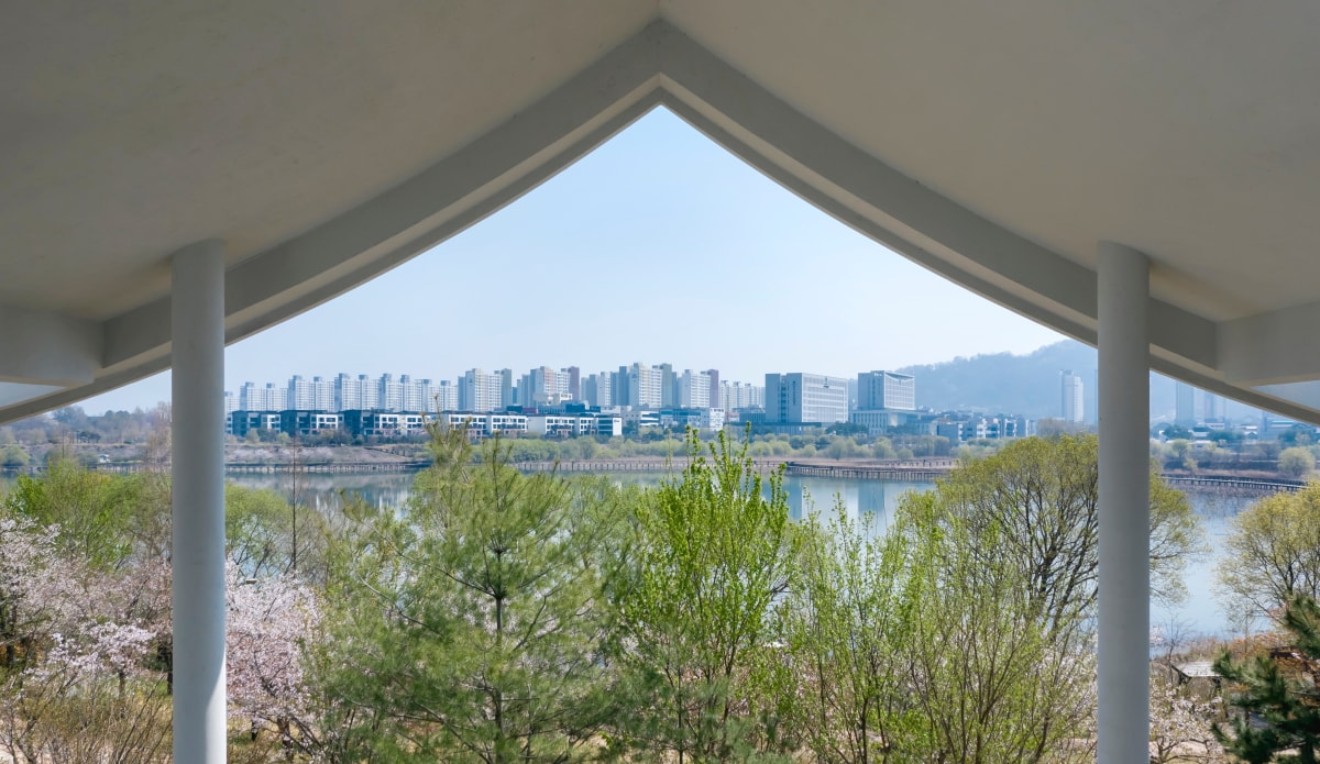 Công trình nổi bật với hệ mái cong mô phỏng kiến trúc truyền thống Hàn Quốc, kết hợp không gian mở và sân trong thiền định.