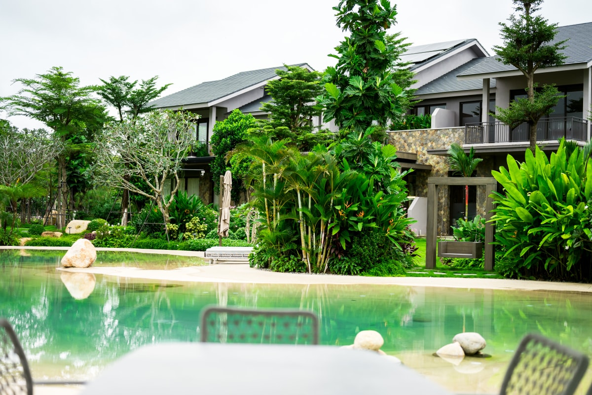 Biệt thự Forest Retreat có thiết kế mở, 4 mặt bao bọc bởi thiên nhiên, mật độ cây xanh 55 m2 cho mỗi người, có tầng hầm trải nghiệm riêng tư, nằm giữa khu đô thị Eco Retreat 220 ha.