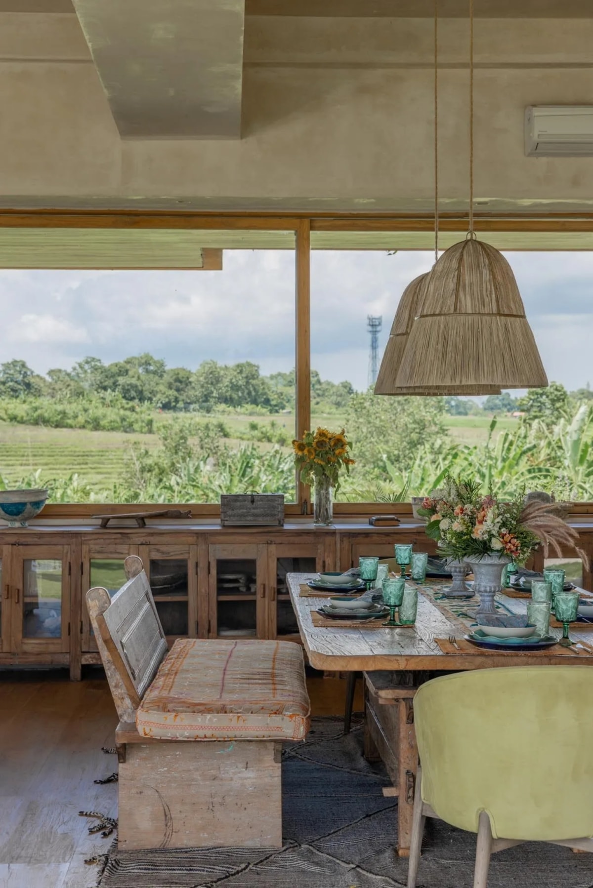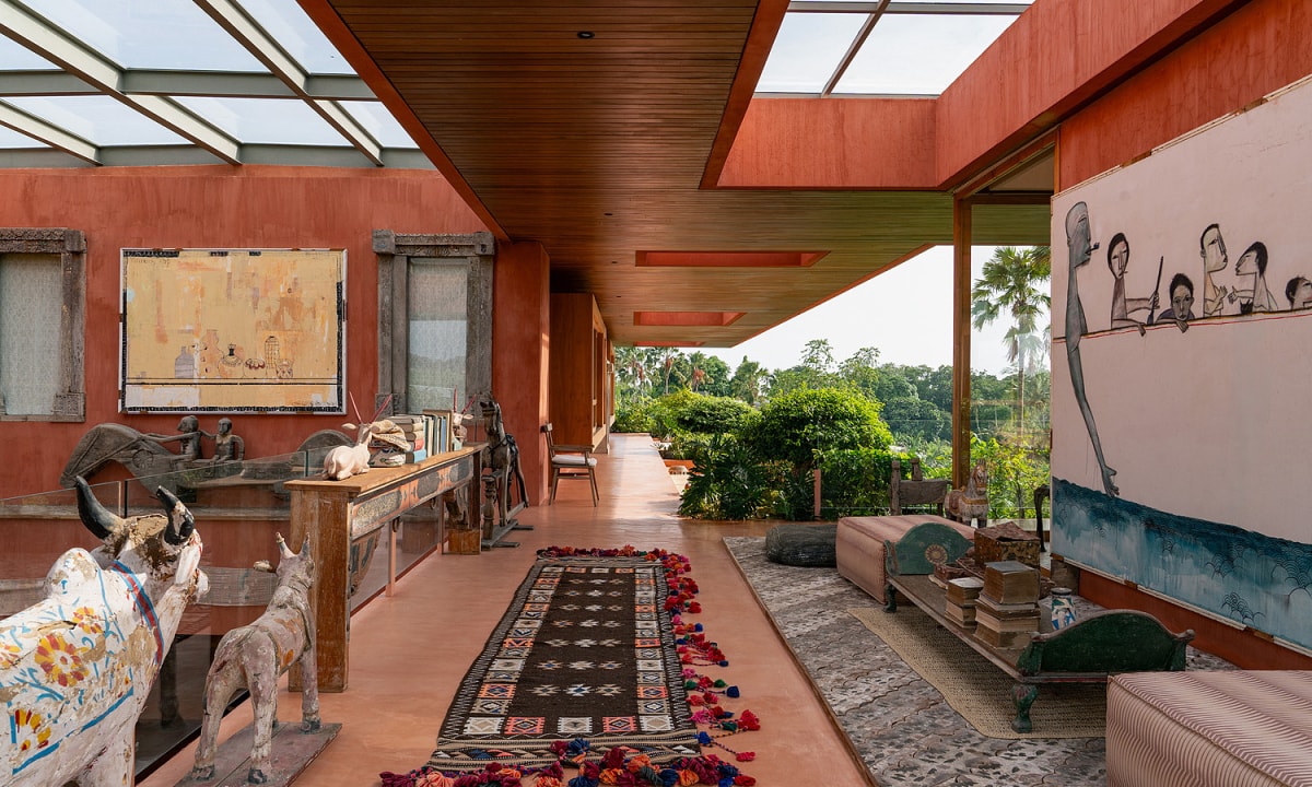Căn biệt thự được tổ chức như một không gian trưng bày mở tầm nhìn ra cánh đồng lúa và để nghệ thuật hiện diện xuyên suốt trong cấu trúc kiến trúc.