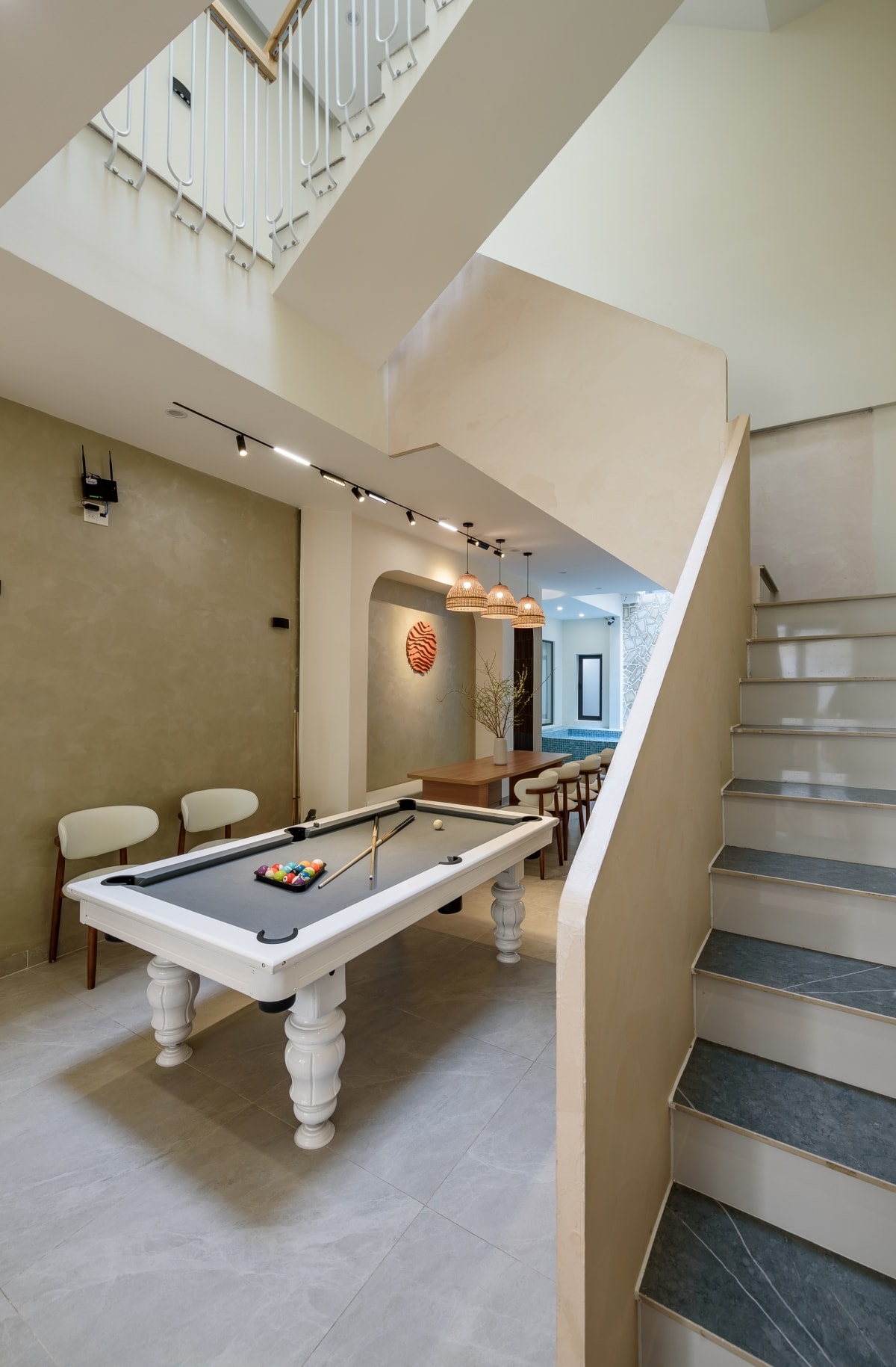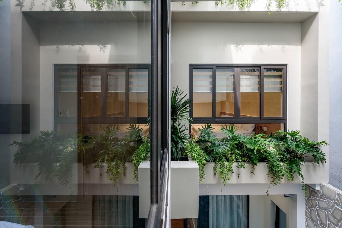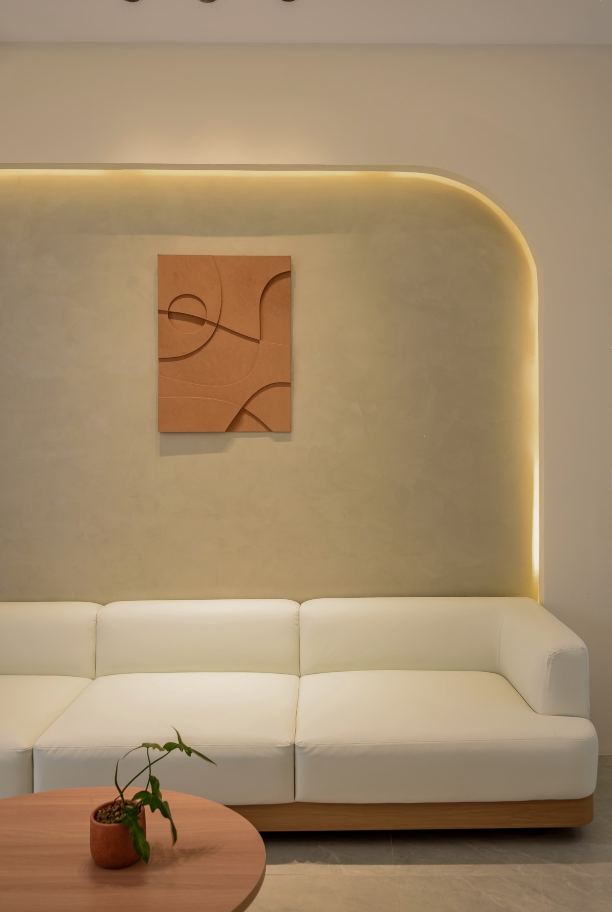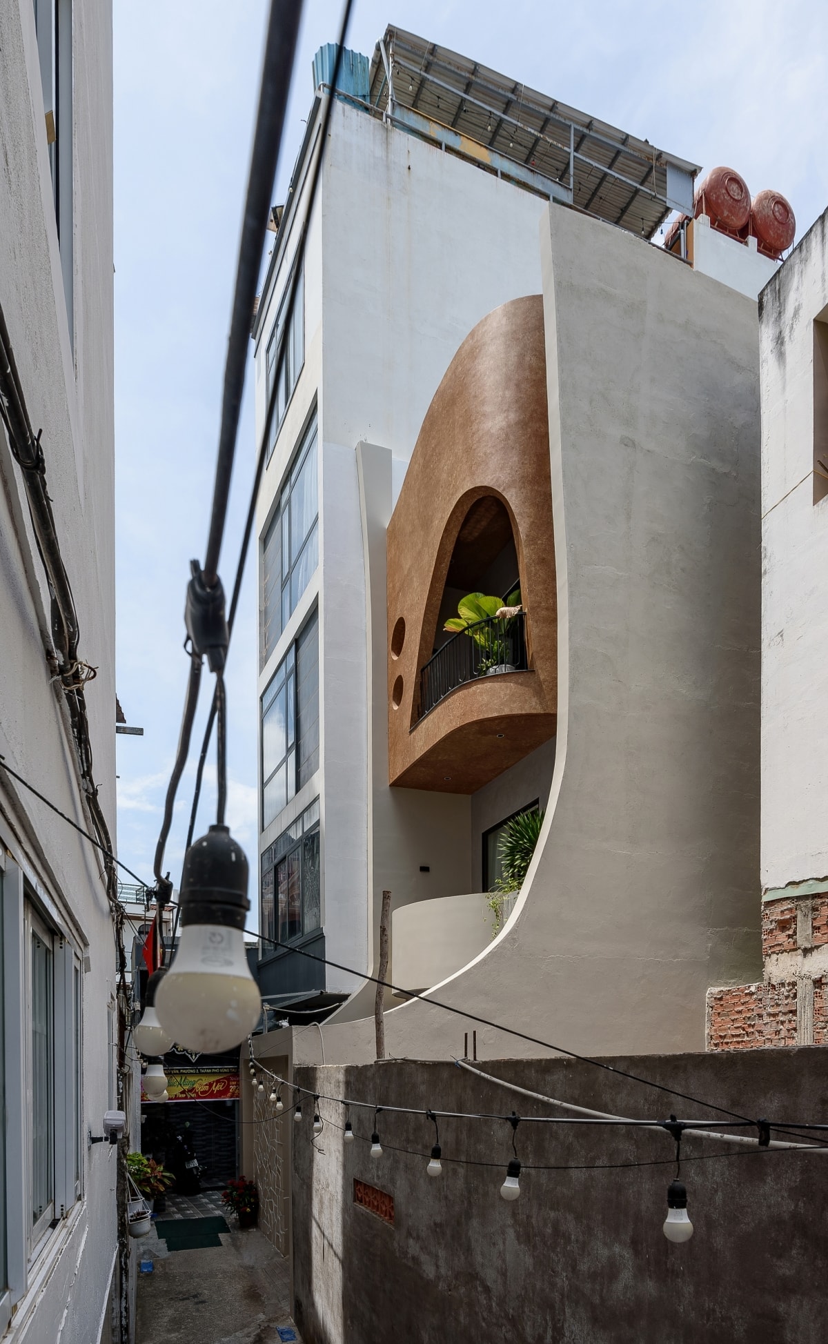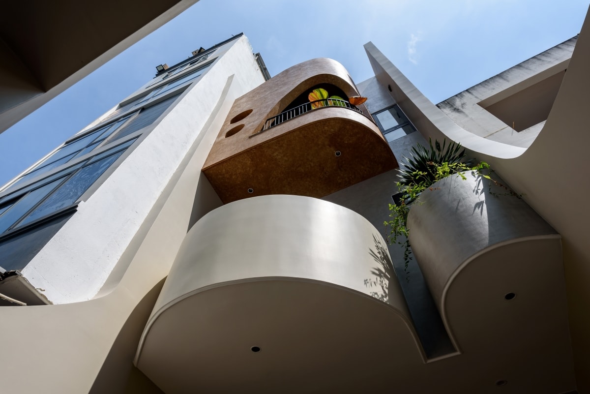 Công trình 3 tầng xử lý vỏ bọc kiến trúc bằng các khối uốn cong, tính toán tỷ lệ trên mặt đứng để kiểm soát bức xạ nhiệt và tạo luồng gió tự nhiên.