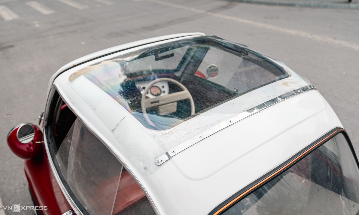 Phần mui cũ xuống cấp đã được chủ nhân thay thế bằng tấm nhựa mica, bắt vít cố định. Nguyên bản tất cả xe Isetta khi sản xuất đều có mui vải, tương tự cửa sổ trời ngày nay. Ngoài mục đích làm mát, xe bắt buộc phải trang bị mui vải để thoát hiểm do người lái phải vào xe qua một cửa duy nhất phía trước.