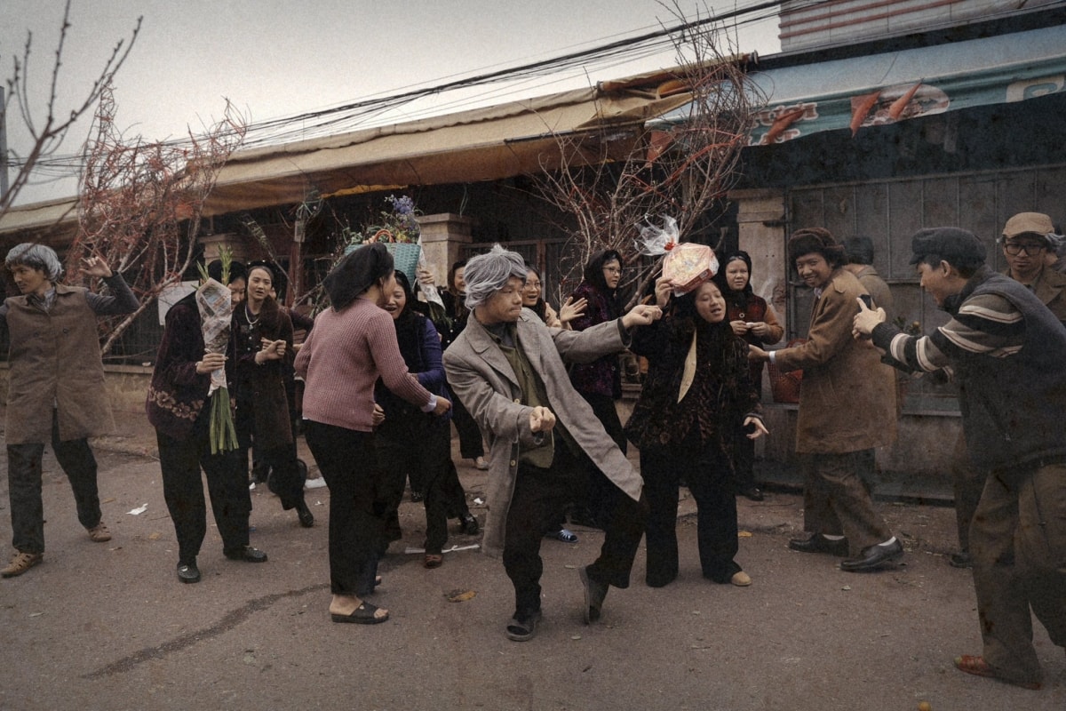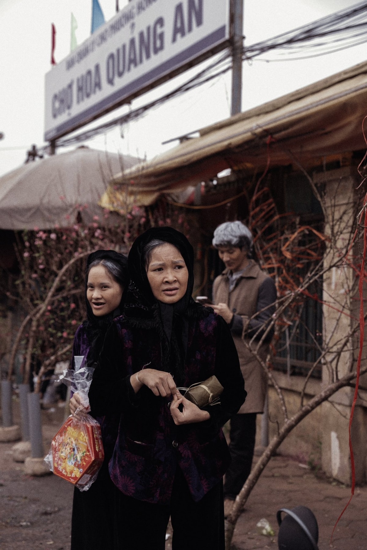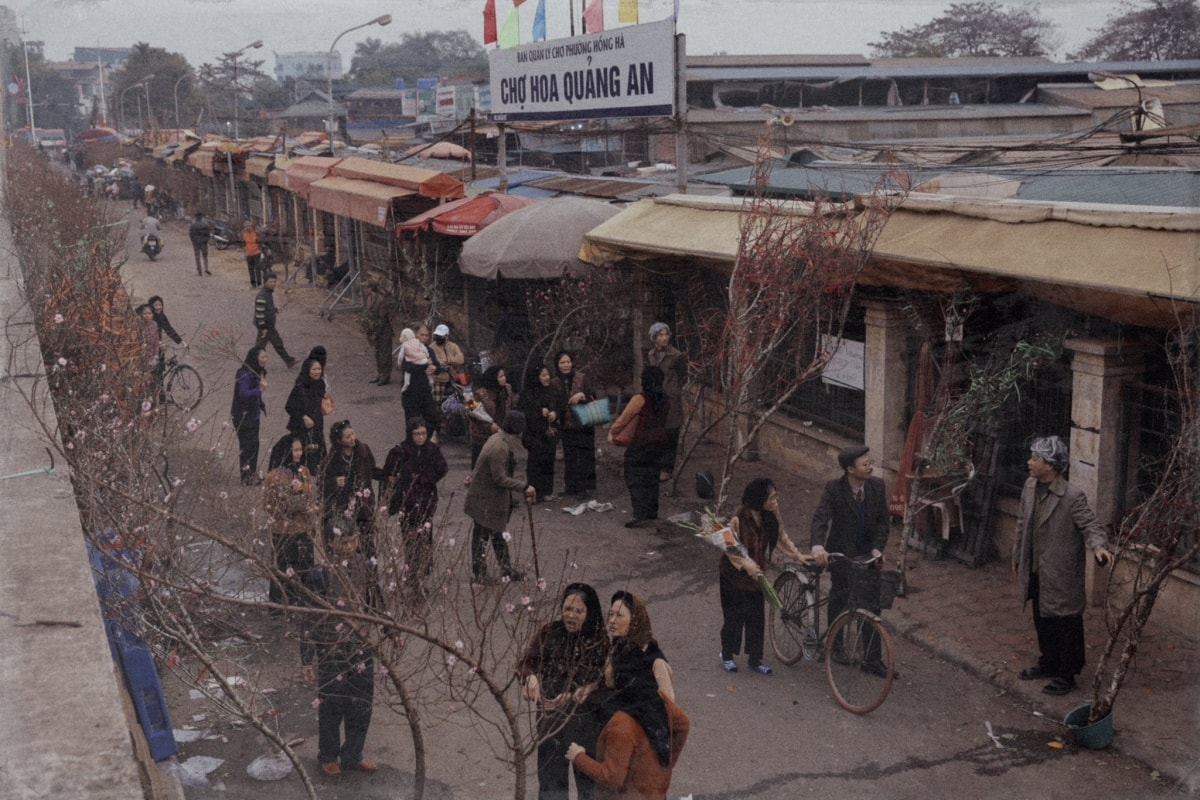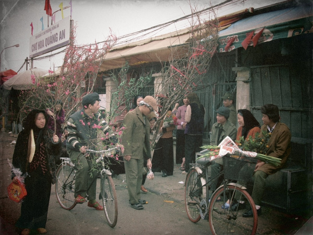 Giữa nhịp sống vội vã ngày nay, họ chọn quay về những ngày Tết xưa. Êkíp tái hiện chợ quê miền Bắc với hình ảnh cành đào, cây quất, bánh chưng xanh.