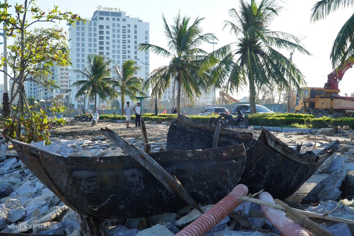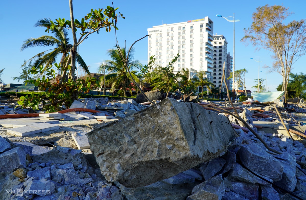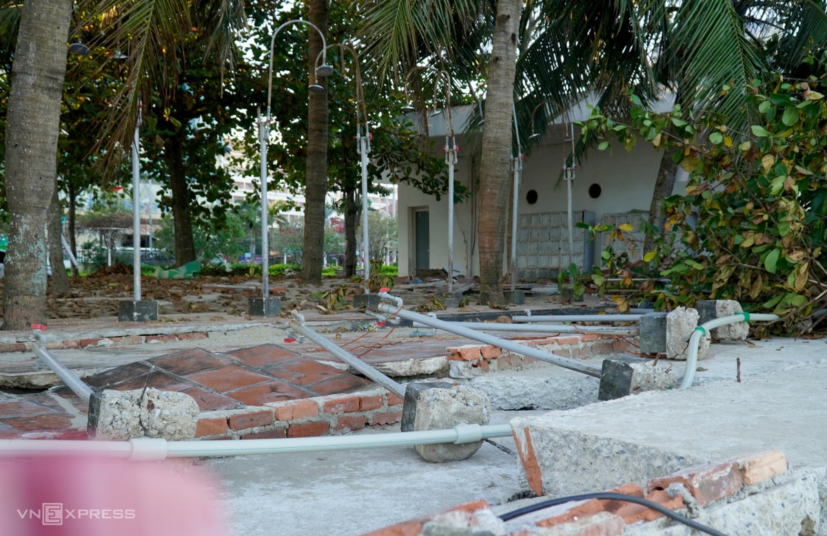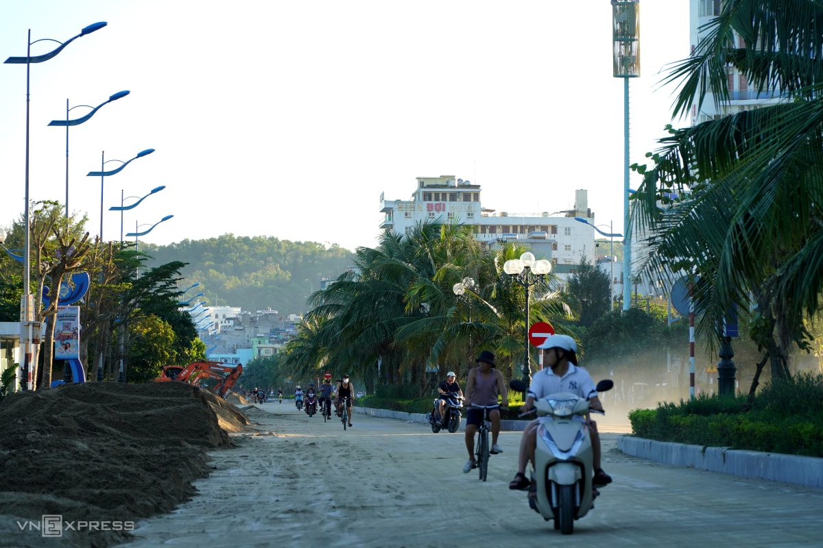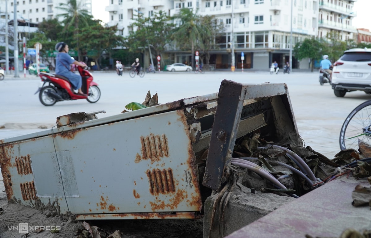 Bão Bualoi đổ bộ đúng lúc triều cường khiến hàng nghìn m3 cát và các loại rác thải tràn lên đường phố Sầm Sơn, nhiều hubway, lều lán, vỉa hè hư hỏng nặng.