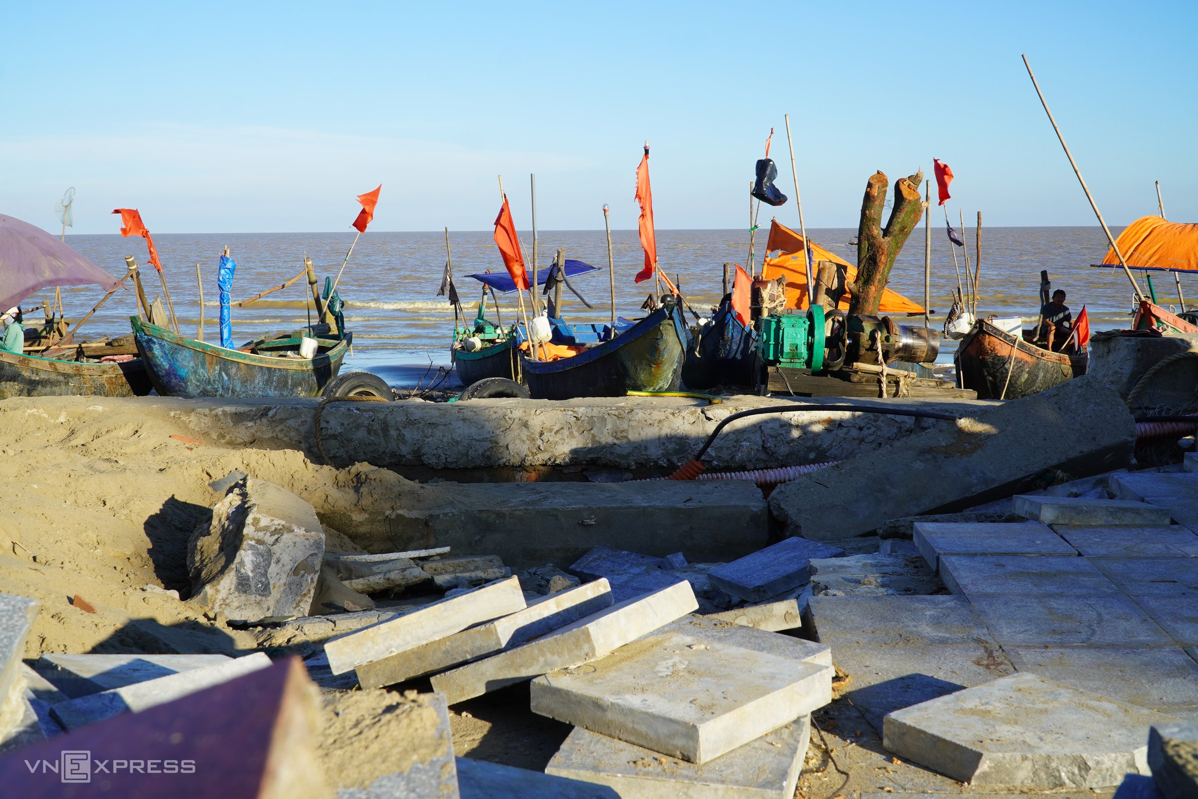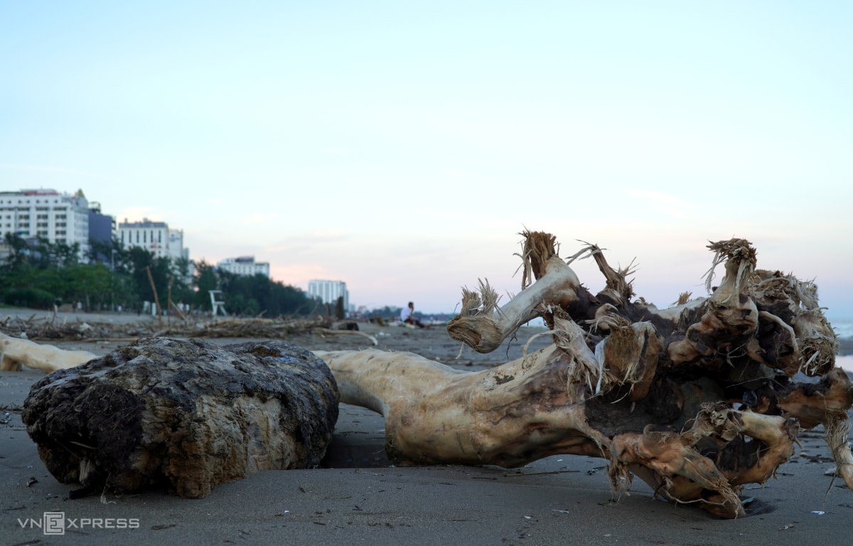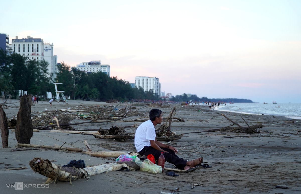 Bờ biển Sầm Sơn ngổn ngang đất cát, rác thải sau bão