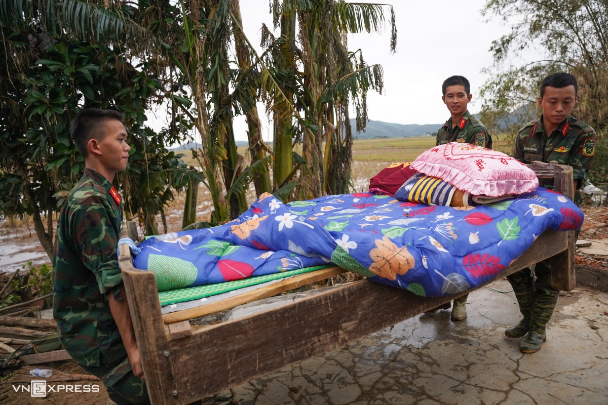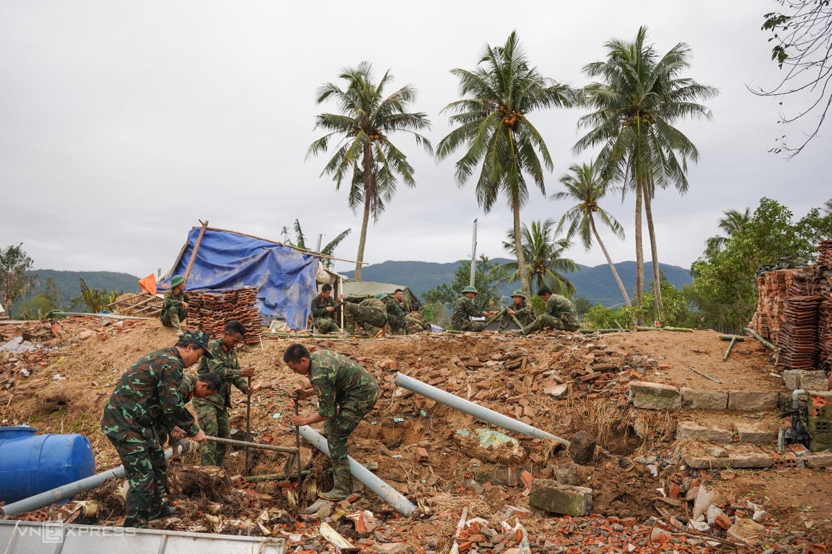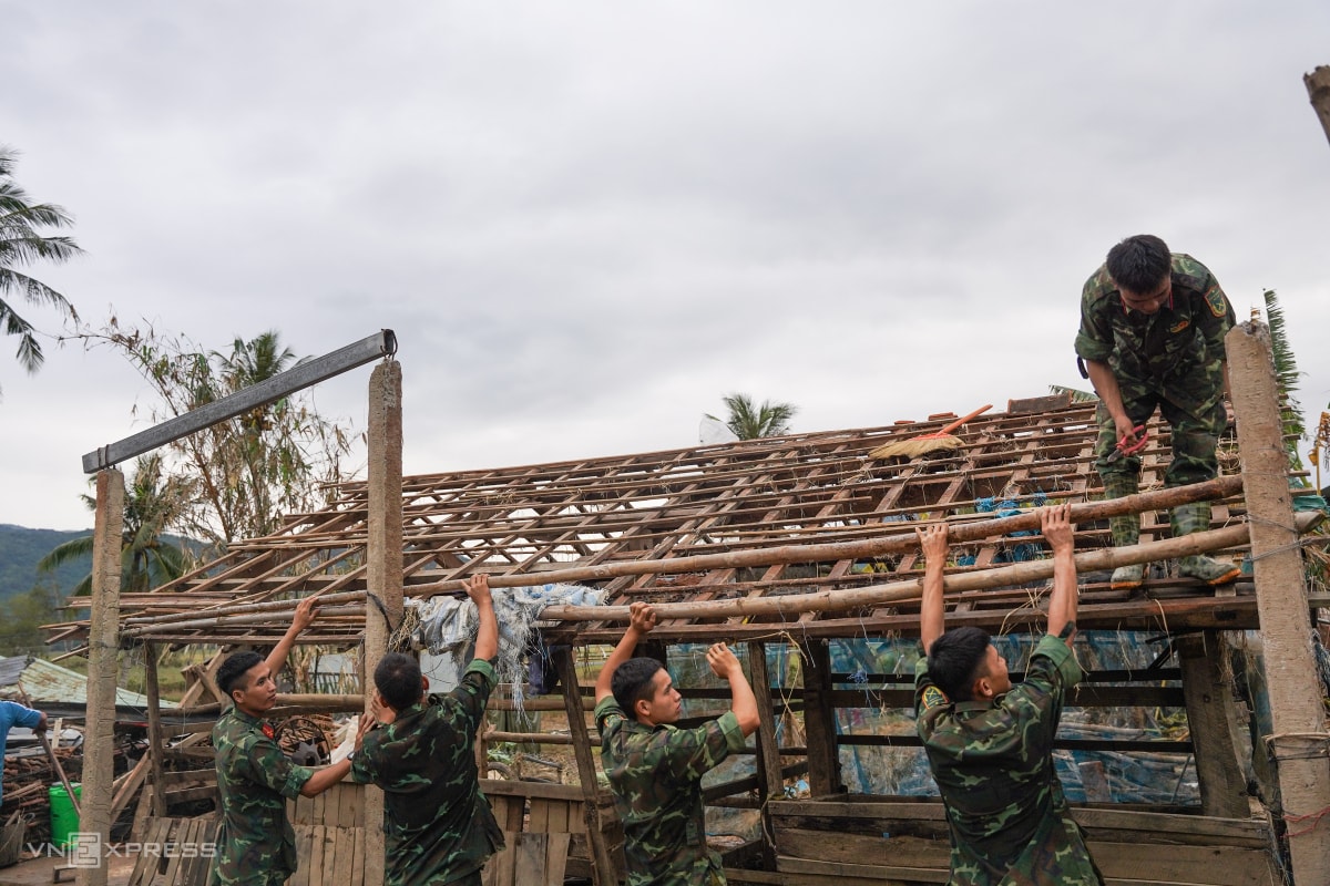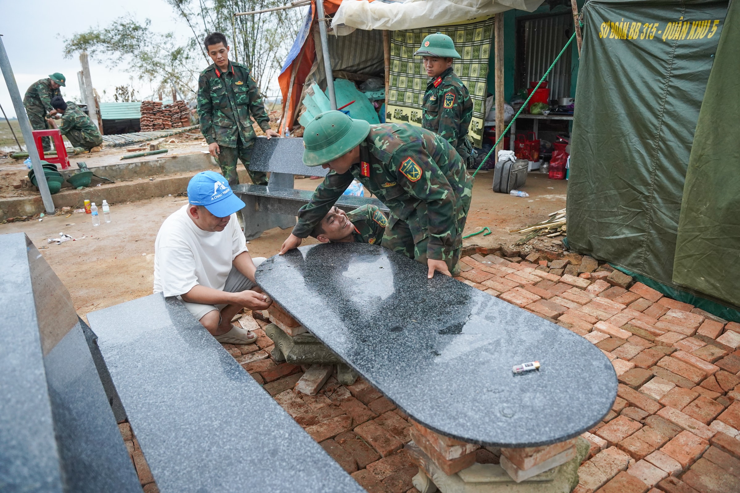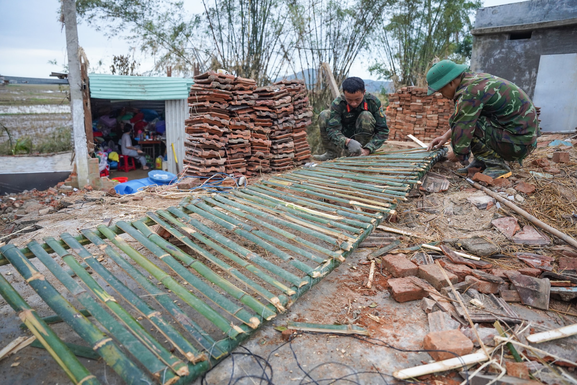 Bộ đội giúp người Hòa Thịnh dựng nhà sau lũ