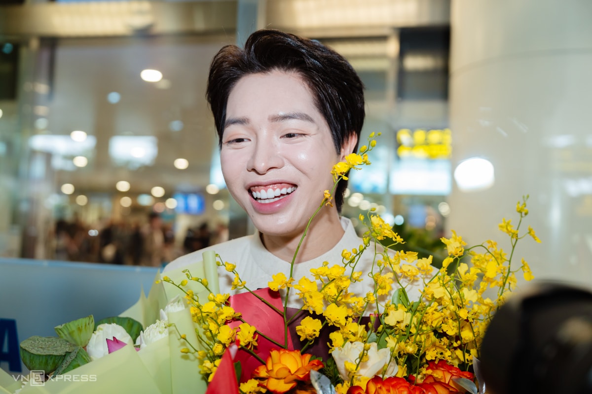 Fan mang theo hoa, poster in hình Đức Phúc. Các fan hoạt động trong FC của nam ca sĩ từ năm 2015 đến nay, đồng hành anh ở nhiều sự kiện. Khán giả Hương Giang 34 tuổi, là fan Đức Phúc từ khi anh đoạt quán quân The Voice. Hôm nay, cô xin đi làm muộn để đến đón thần tượng. Nguyễn Quỳnh, 26 tuổi, trưởng câu lạc bộ fan Đức Phúc. Cô có mặt ở sân bay Nội Bài từ 5h30.