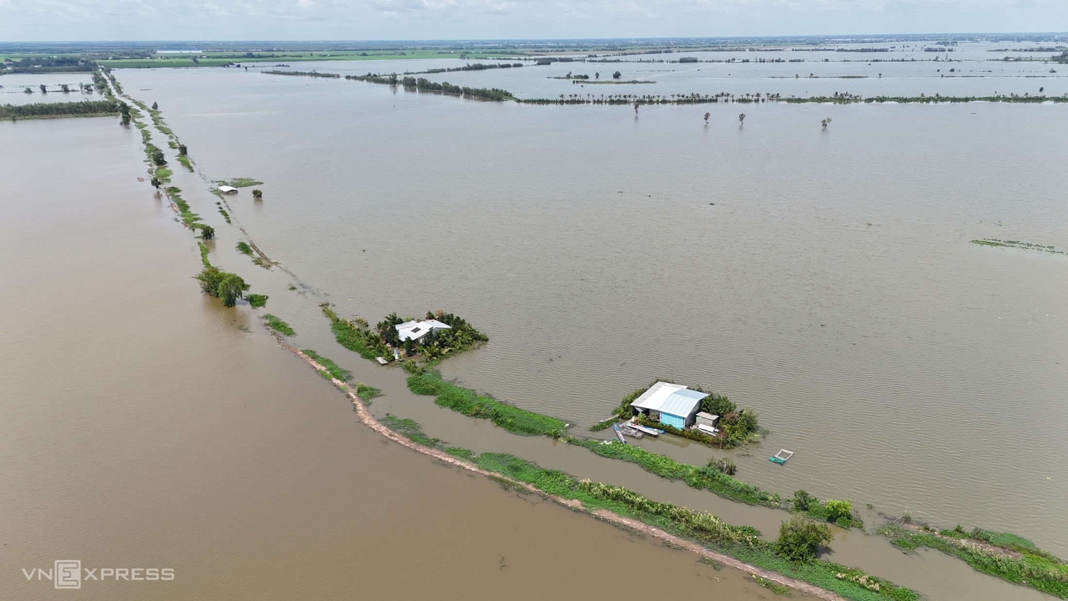 Lũ cao khiến việc đến trường của học sinh gặp khó. Chiều 22/10, anh Lê Lâm Thiện, 35 tuổi, ở ấp Vĩnh Bửu, xã Vĩnh Châu, phải dùng vỏ lãi đón con và ba cháu tan học. Nhà cách trường chỉ 2 km, song năm nay lũ lớn, chính quyền cho xáng đắp cao tuyến đê – tuyến đường bộ duy nhất – để bảo vệ lúa, khiến người dân phải di chuyển bằng xuồng.