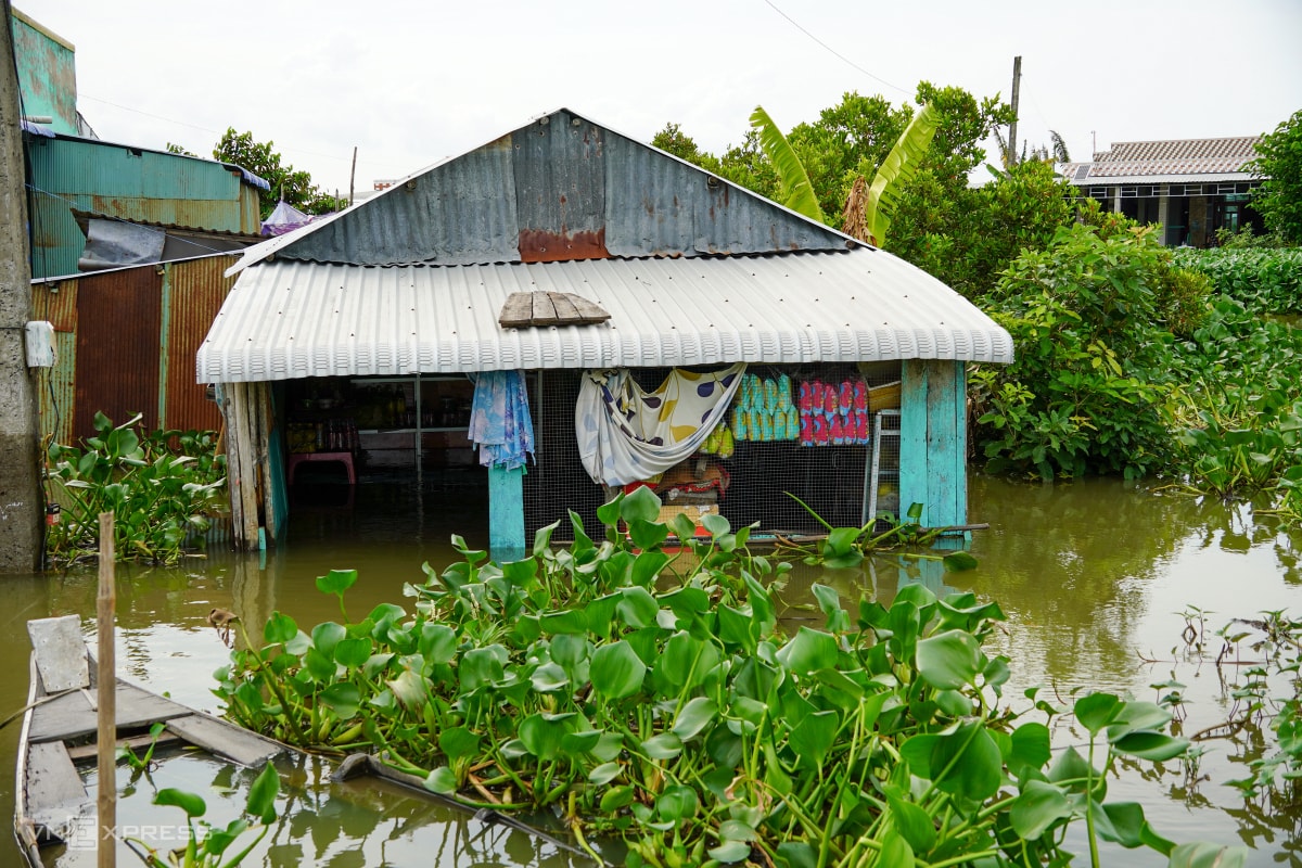 Căn nhà bà Ba cất 10 năm trước, thời điểm đó chủ nhà đã đắp nền nhà cao hơn mặt đường để đề phòng ngập lũ. Tuy nhiên, lũ năm nay dâng cao khiến căn nhà bị ngập sâu từ 20 đến 50 cm.