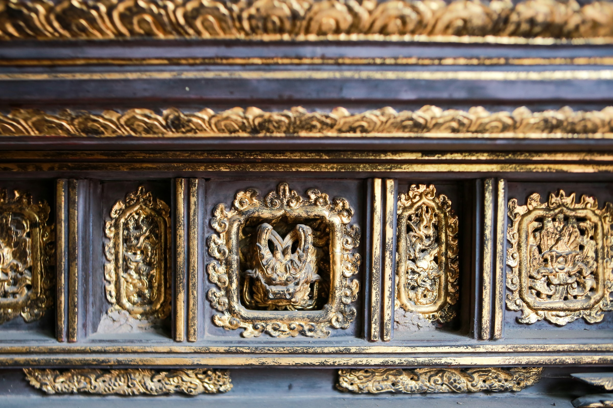 Kỹ thuật chạm bong (tạo độ nổi, độ sâu), chạm lộng (tạo độ thoáng, độ mở) tạo chiều sâu và cảm giác chuyển động mạnh, cho thấy tay nghề điêu luyện và thẩm mỹ đặc sắc của nghệ nhân thế kỷ 17.