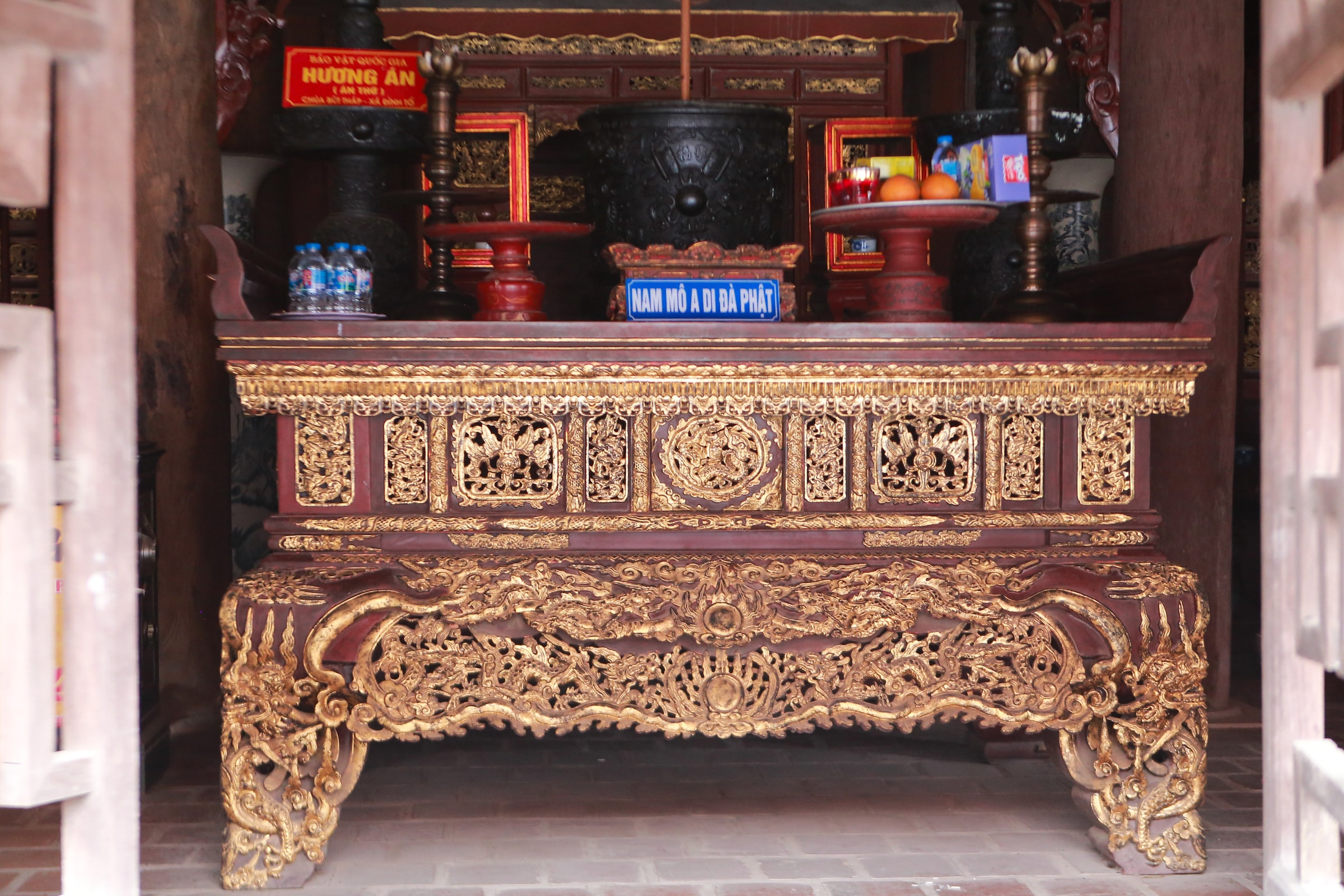 Bảo vật hương án (bàn thờ) chùa Bút Tháp được giới khảo cổ đánh giá độc đáo, mỗi hình tượng rồng lại có nét điểm riêng. Tại phần thân, các ô hộc hình vuông được trang trí đồ án rồng cuộn, nằm trong lá đề, bên ngoài có mây lửa bao quanh hay thân rồng đang vận động, bám vào thân cột.