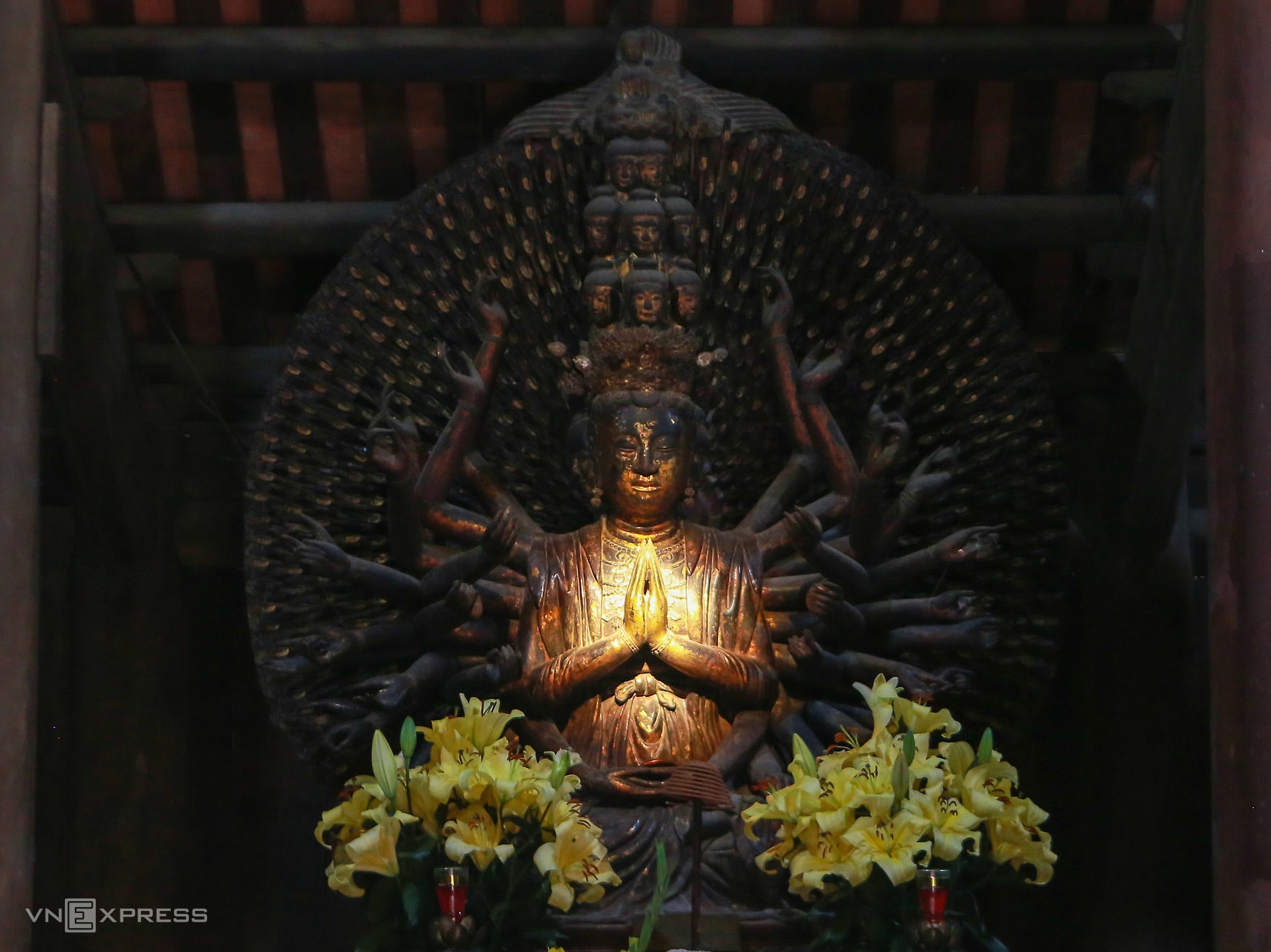 Các kiến trúc điêu khắc độc đáo của thế kỷ 17 được hội tụ trong bốn bảo vật quốc gia tại chùa Bút Tháp, trong đó có tượng Phật bà Quan Âm nghìn mắt nghìn tay.