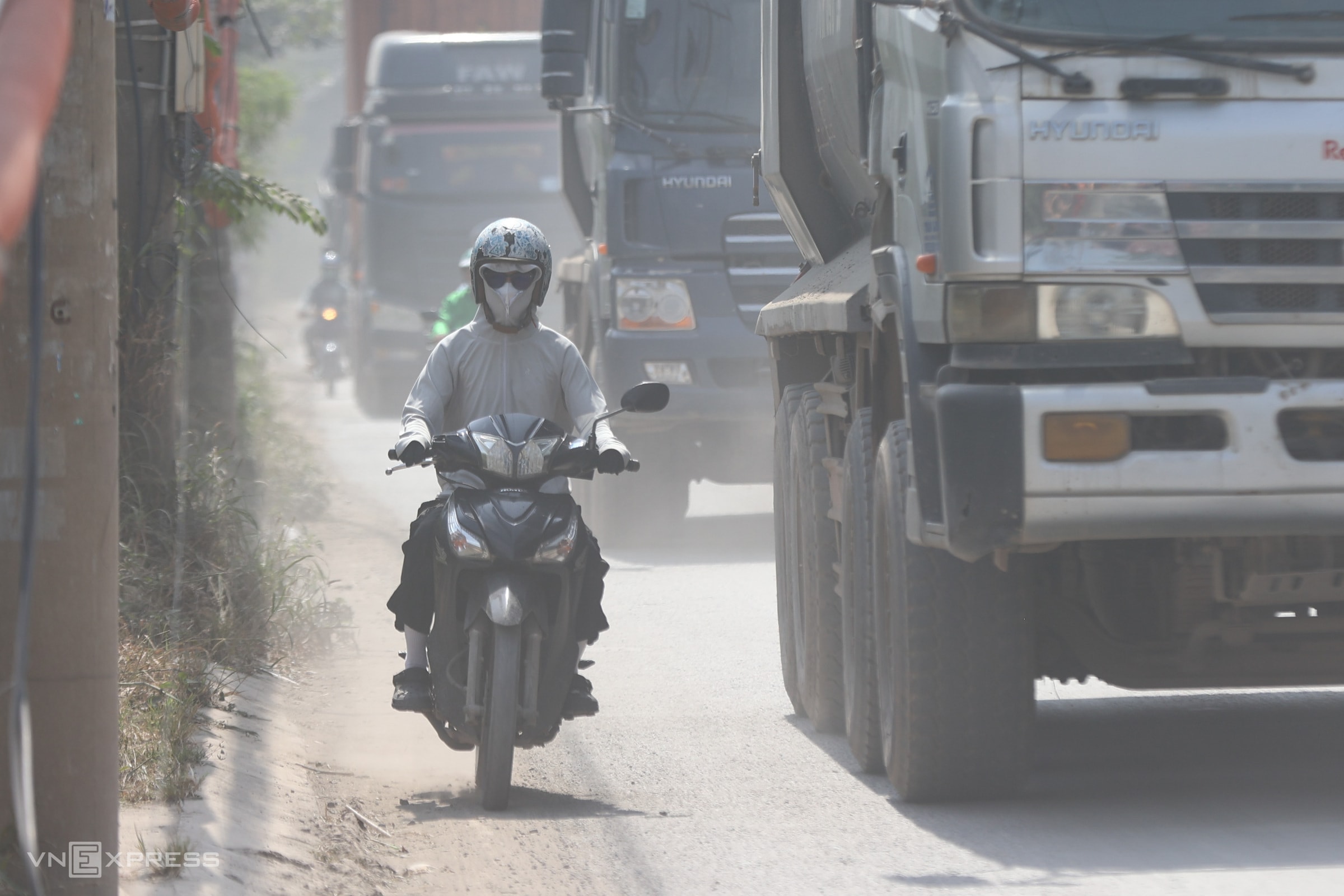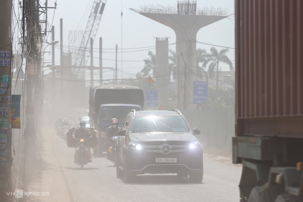 Bụi mịt mù trên đường gần công trường Vành đai 3 TP HCM