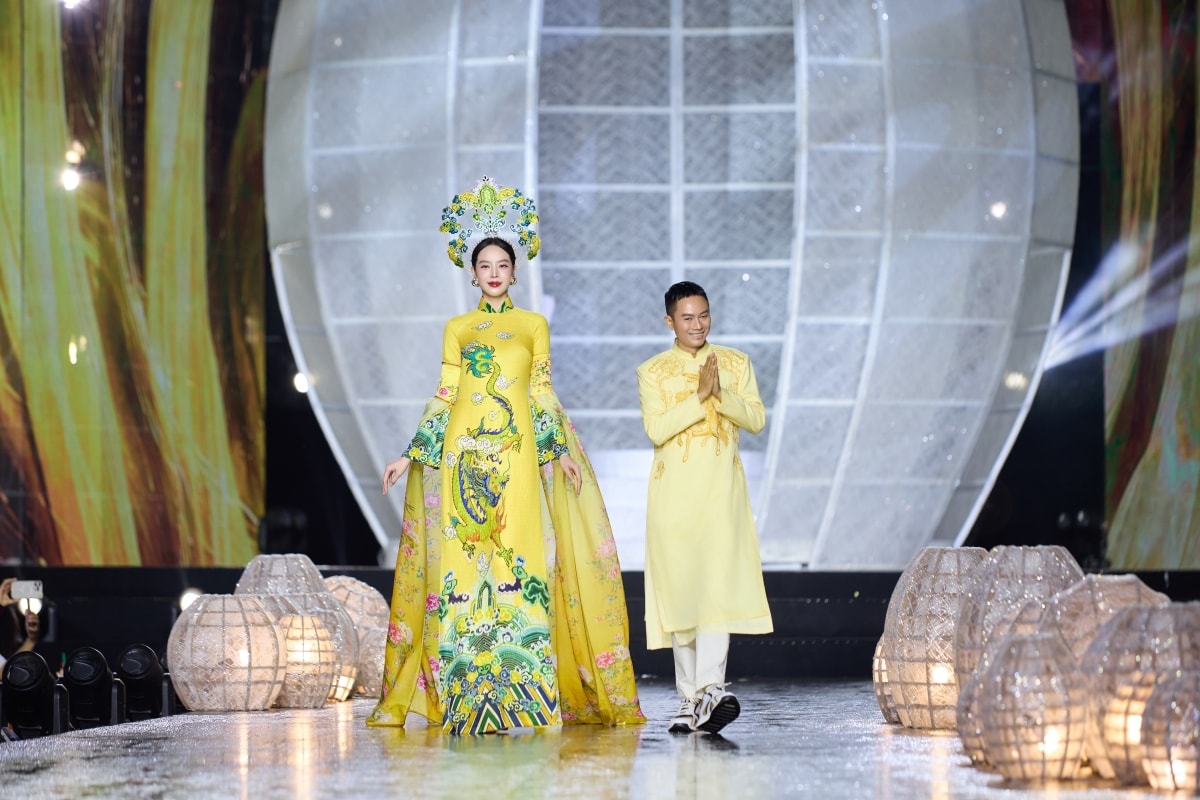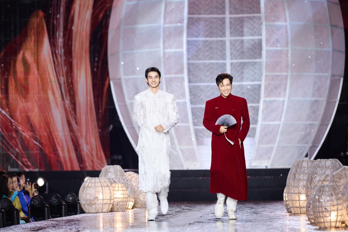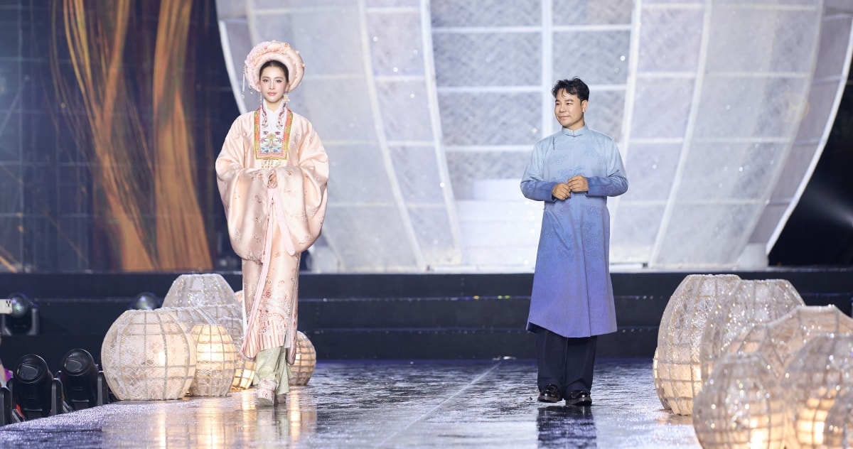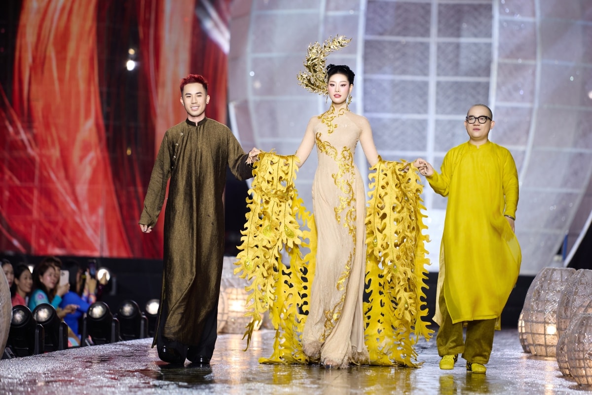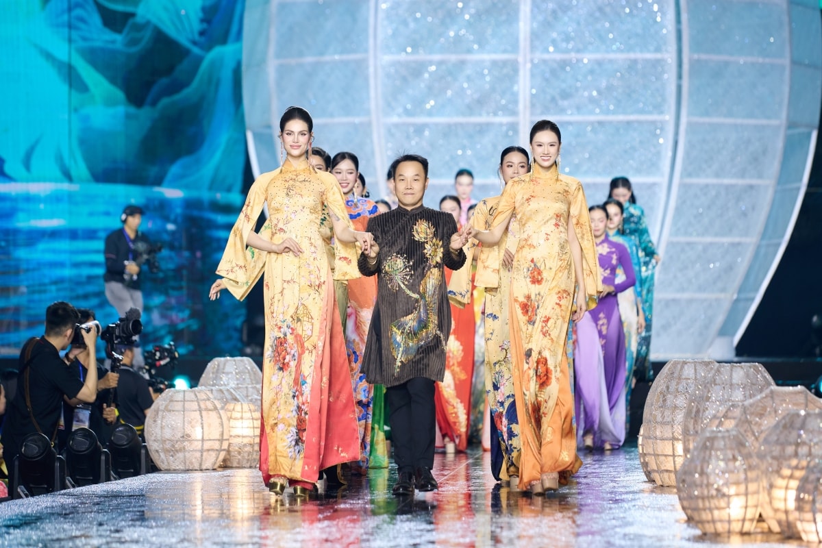 Nhà mốt Liên Hương, Trần Thiện Khánh, Việt Hùng trình diễn thời trang cùng các nàng thơ tại sự kiện tôn vinh áo dài diễn ra, ở đường Nguyễn Huệ.