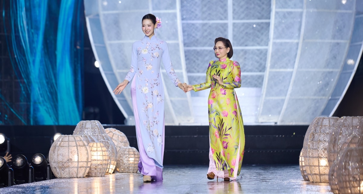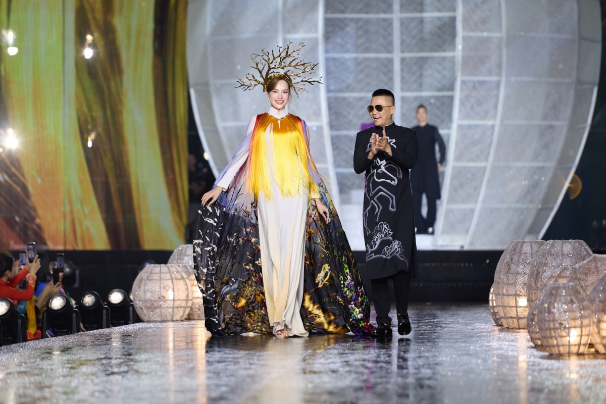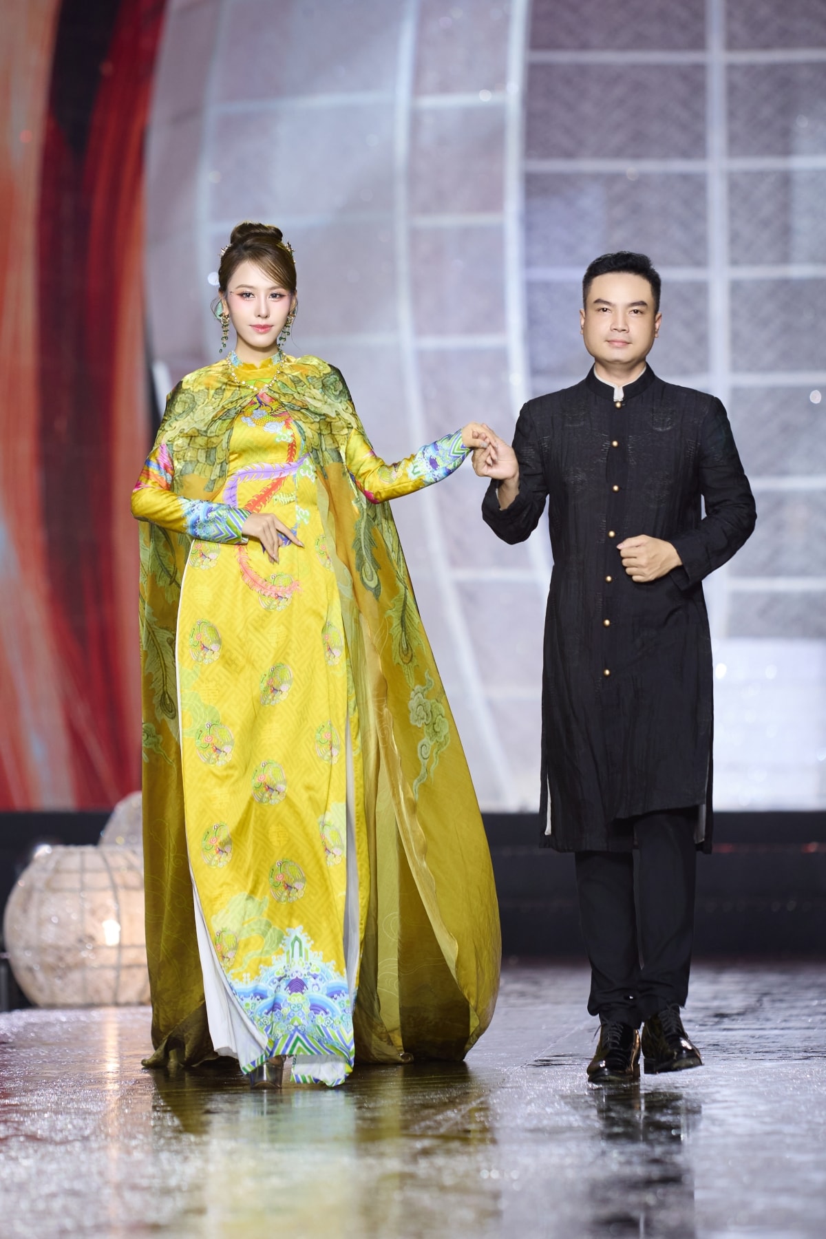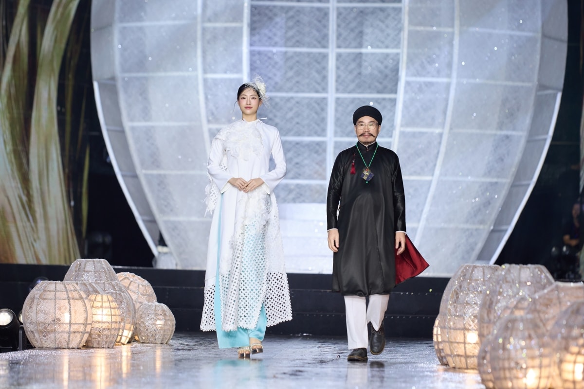 Nhà mốt Liên Hương, Trần Thiện Khánh, Việt Hùng trình diễn thời trang cùng các nàng thơ tại sự kiện tôn vinh áo dài diễn ra, ở đường Nguyễn Huệ.