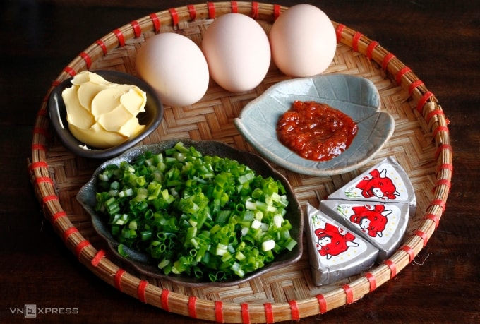 Chuẩn bị các gia vị: Hành lá rửa sạch, thái nhỏ, có thể lấy một chút trộn cùng 1 thìa canh dầu ăn làm dầu hành giúp bánh thơm hơn. Bơ lạt dùng phết bánh tạo mùi thơm hấp dẫn khi nướng. Tuỳ theo khẩu vị có thể thêm phô mai và chút sa tế tạo vị the cay, hợp tiết trời mùa lạnh.
