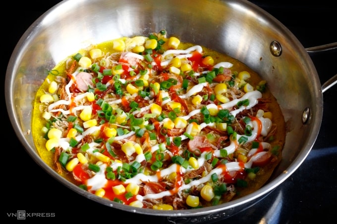 • Cần làm chín topping trước như ngô luộc để ráo nước. Nếu dùng thịt thì nên xào trước.