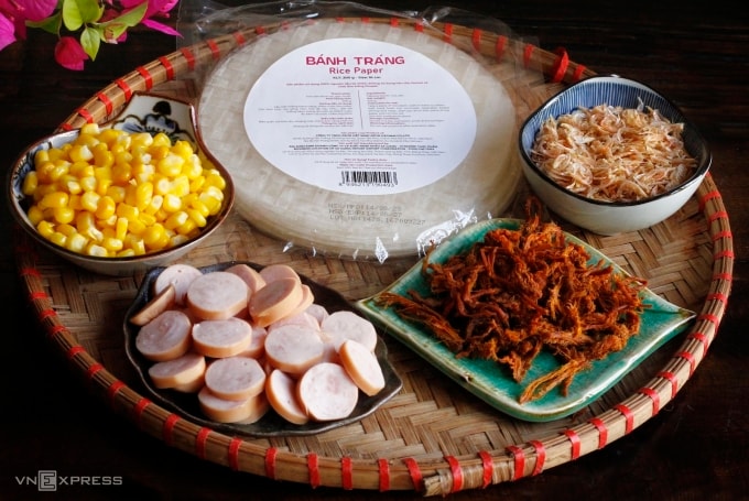 Chọn vỏ bánh tráng nướng: Để bánh giòn rụm và thơm ngon, nên chọn bánh tráng nướng Đà Lạt đặt trên các sàn thương mại điện tử. Loại bánh này có màu vàng đều xen kẽ mè đen, khi nướng cho độ giòn vừa phải, hương thơm đặc trưng. Nếu không tìm được, bạn vẫn có thể dùng bánh tráng thường, loại vừa phải, không quá dai, để khi nướng trên chảo vẫn giòn rụm, không bị cứng hay ướt.