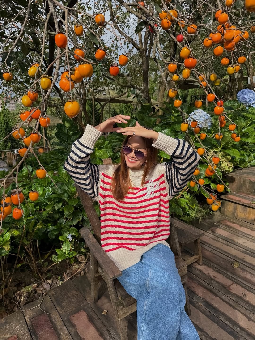 Hôm 7/11, Thanh Hằng chia sẻ ảnh trong chuyến đi Đà Lạt với chồng. Cô chọn áo len kẻ ngang dáng thụng, kết hợp quần jeans ống đứng. Công thức phối đồ toát lên vẻ phóng khoáng được cô theo đuổi nhiều năm qua.