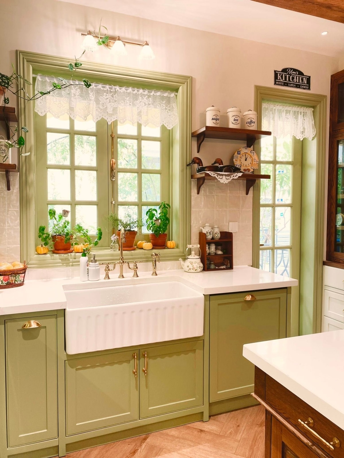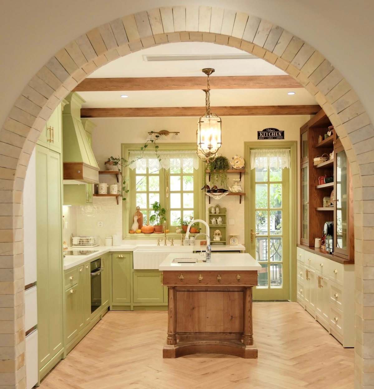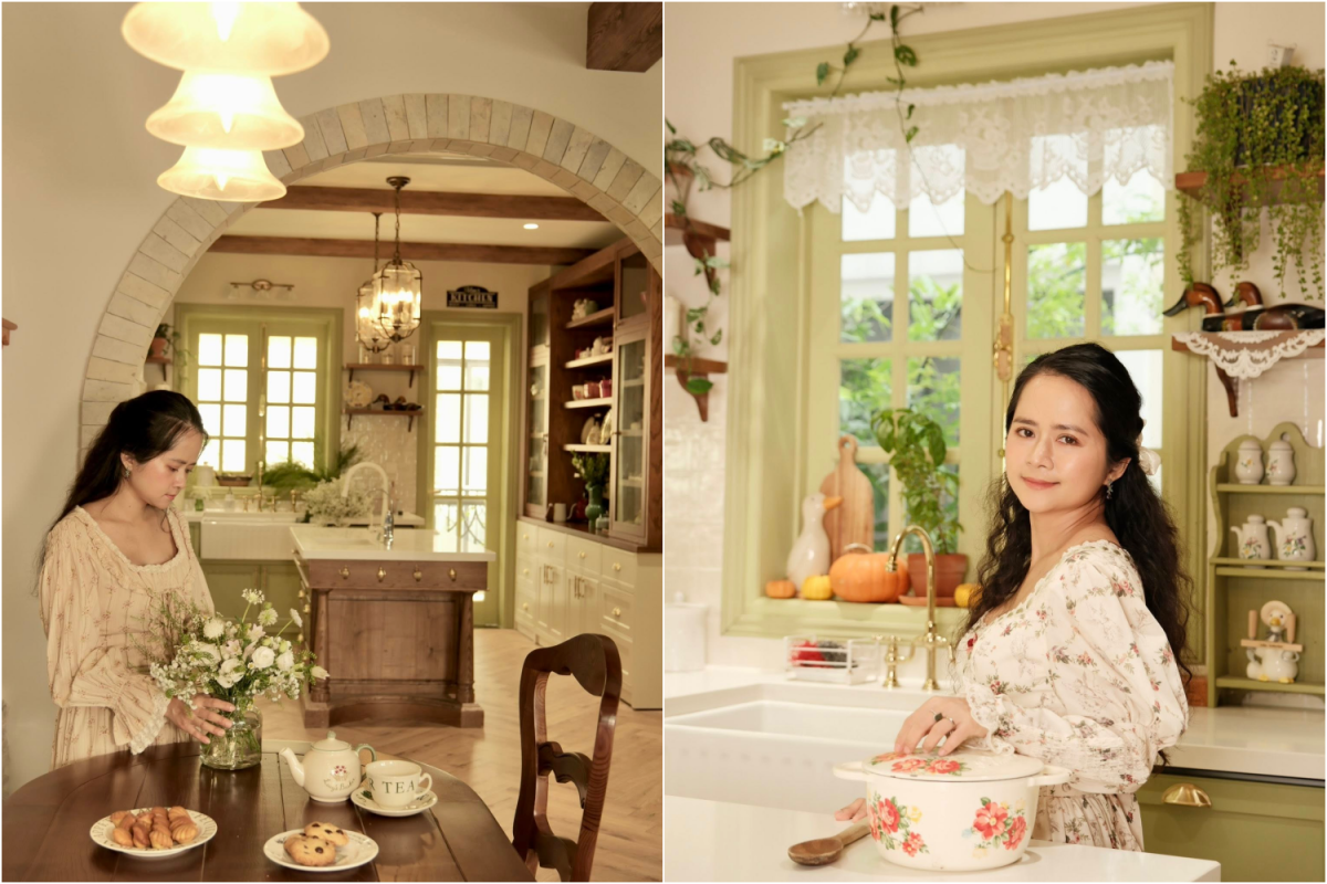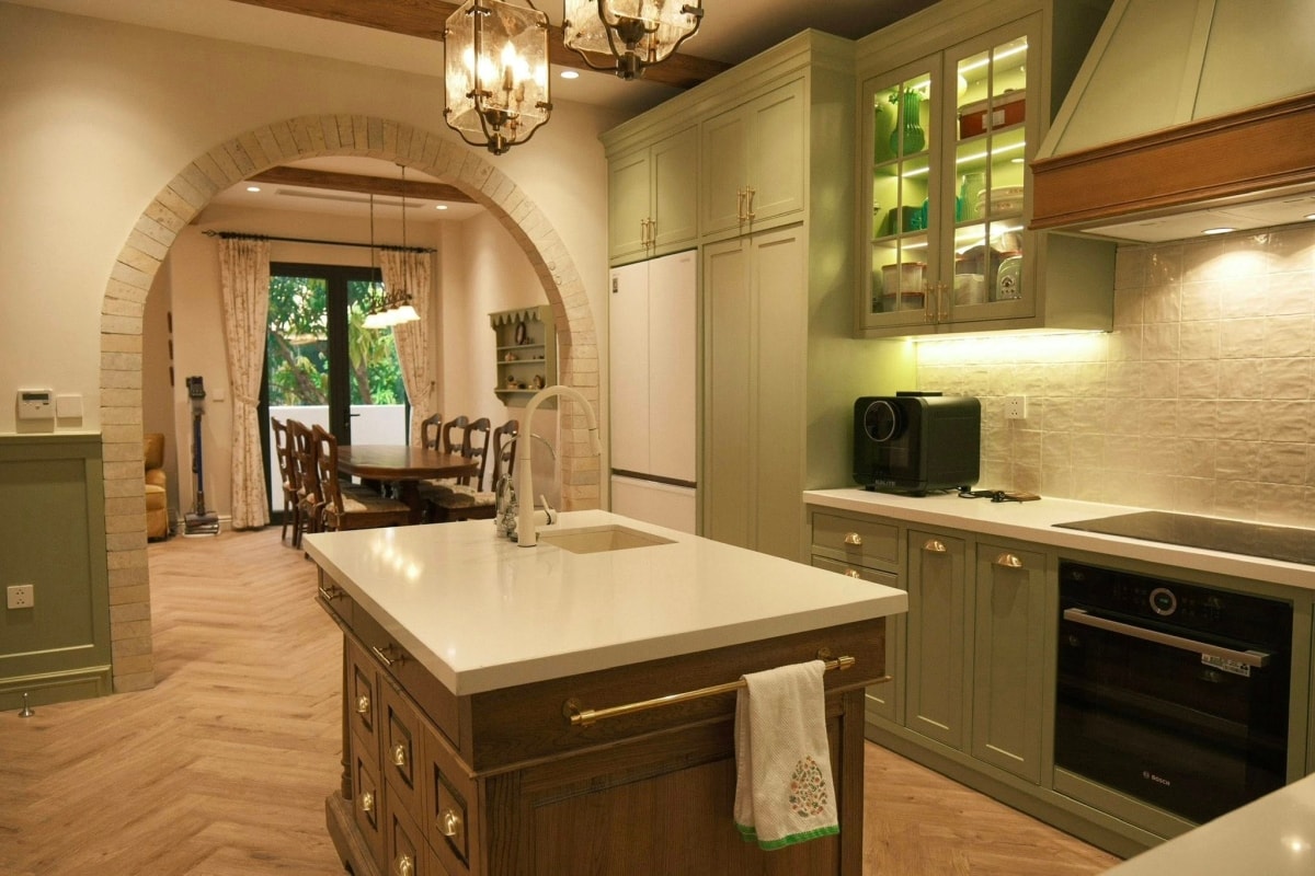 Căn bếp màu xanh bơ mang phong cách đồng quê