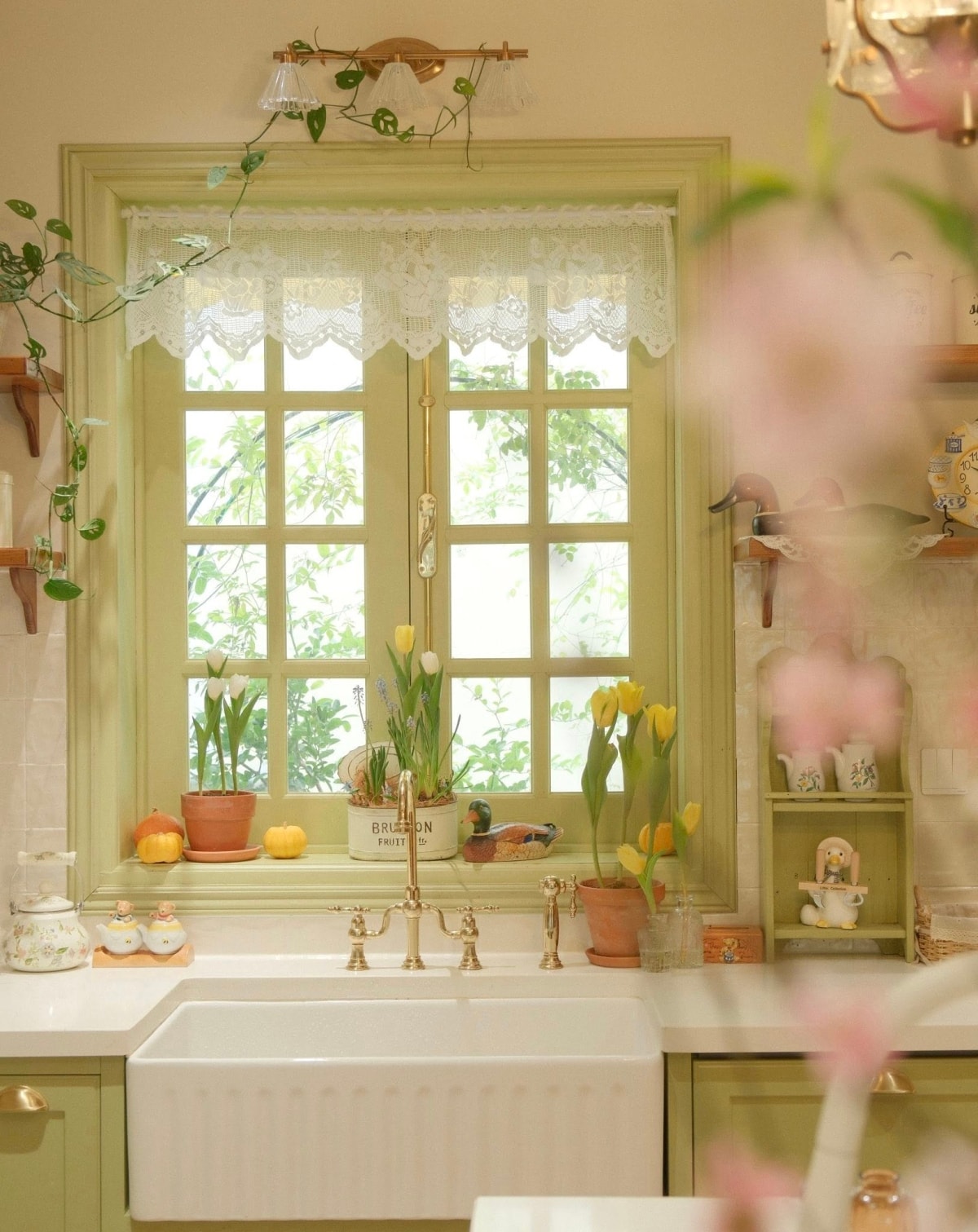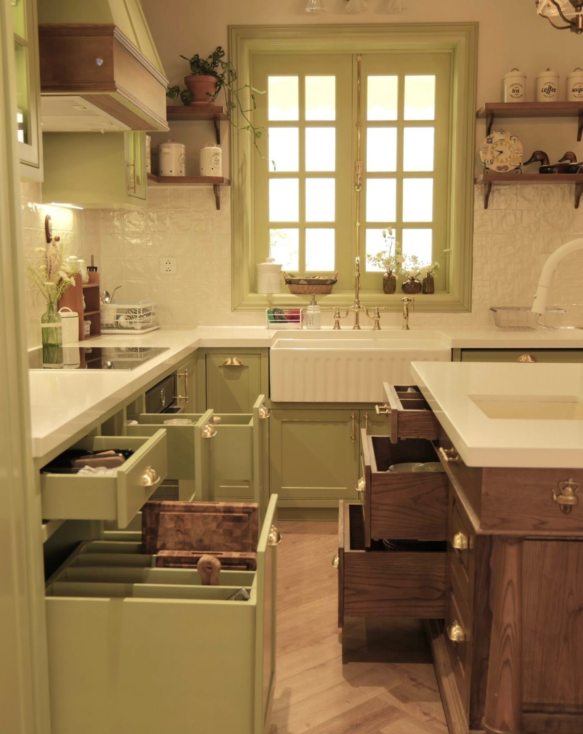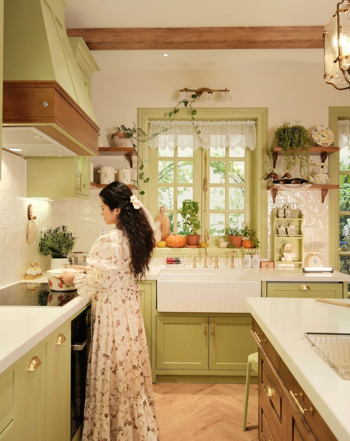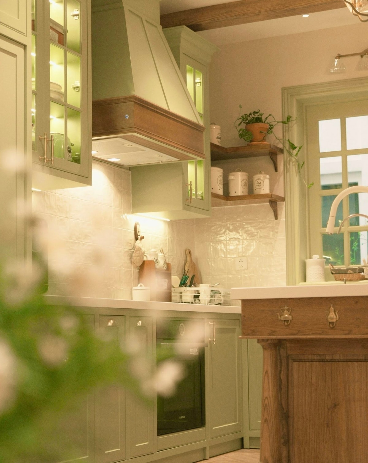 Căn bếp màu xanh bơ mang phong cách đồng quê