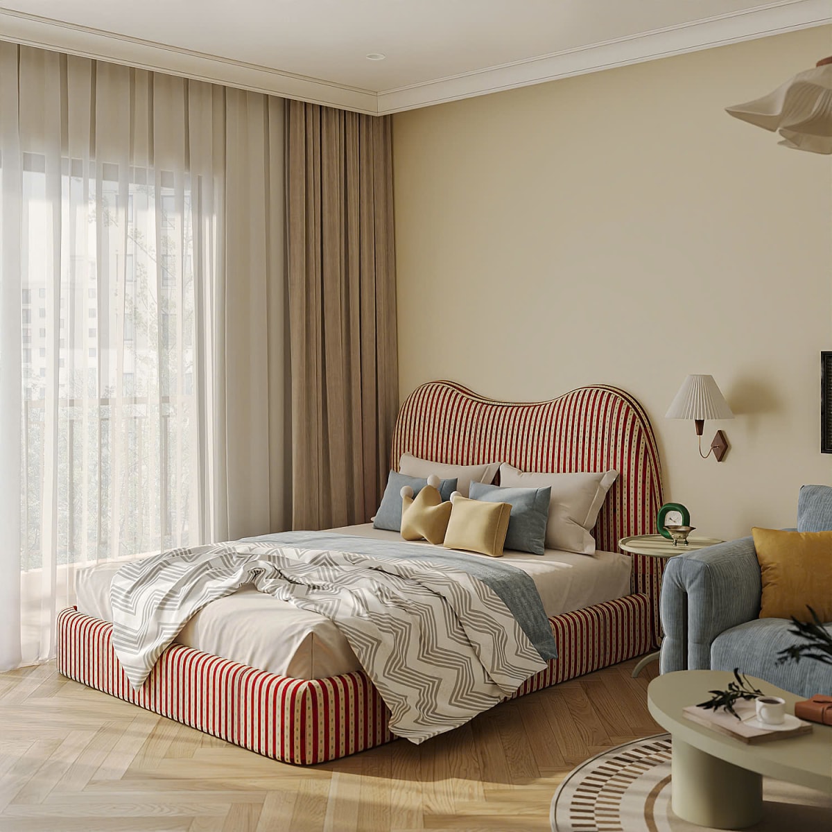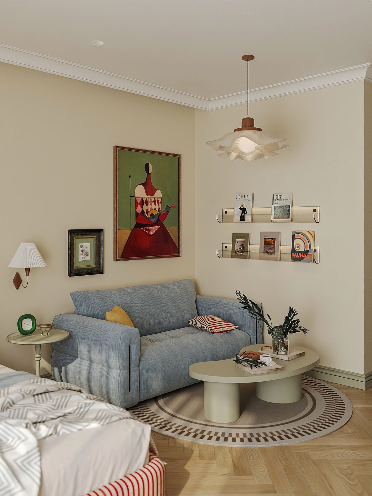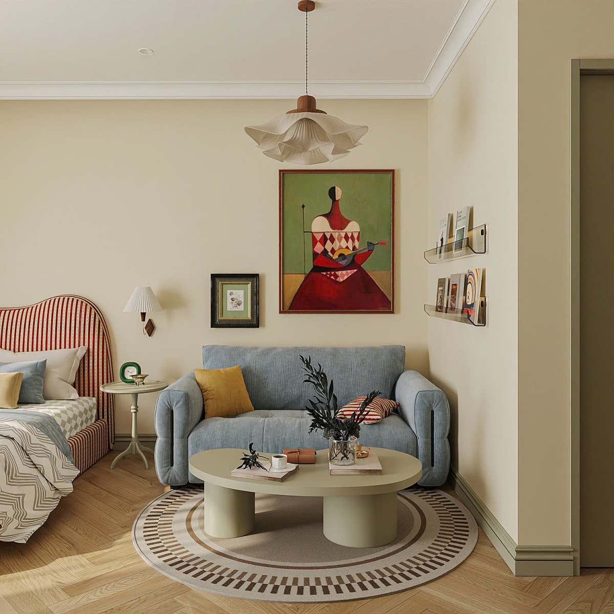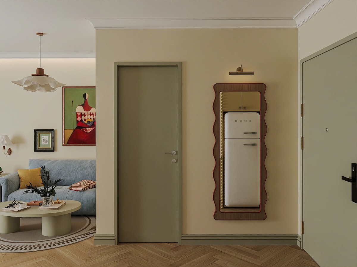 Căn hộ 30 m2 lấy tông màu vàng bơ và chi tiết bo tròn làm ngôn ngữ thiết kế xuyên suốt.