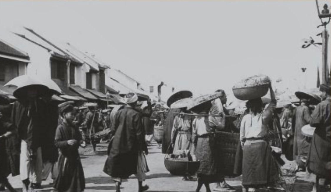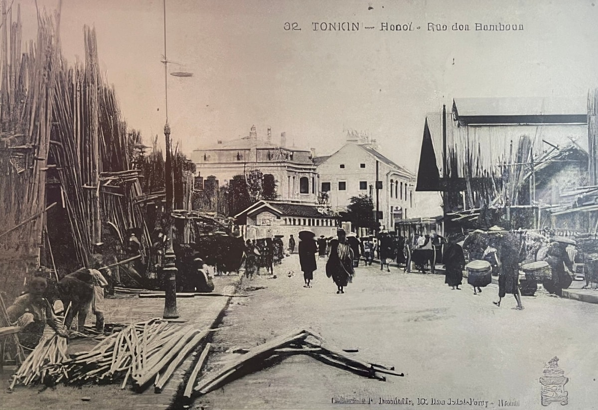 Khung cảnh họp phiên của chợ Bưởi, chợ bán tre nứa 100 năm trước được thể hiện qua ảnh xưa.
