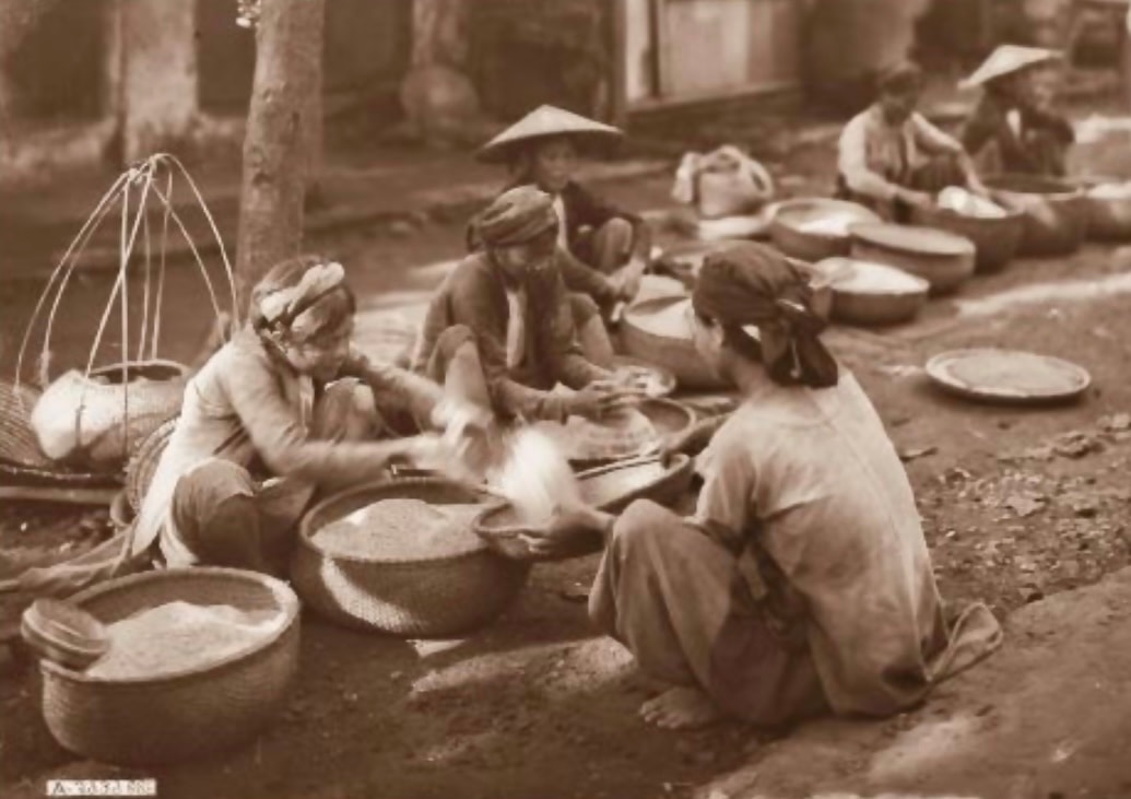 Nhóm phụ nữ bán gạo tại chợ Bưởi. Ảnh: Trung tâm Lưu trữ Quốc gia I sưu tầm