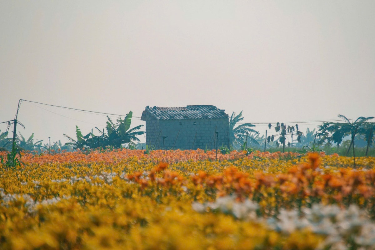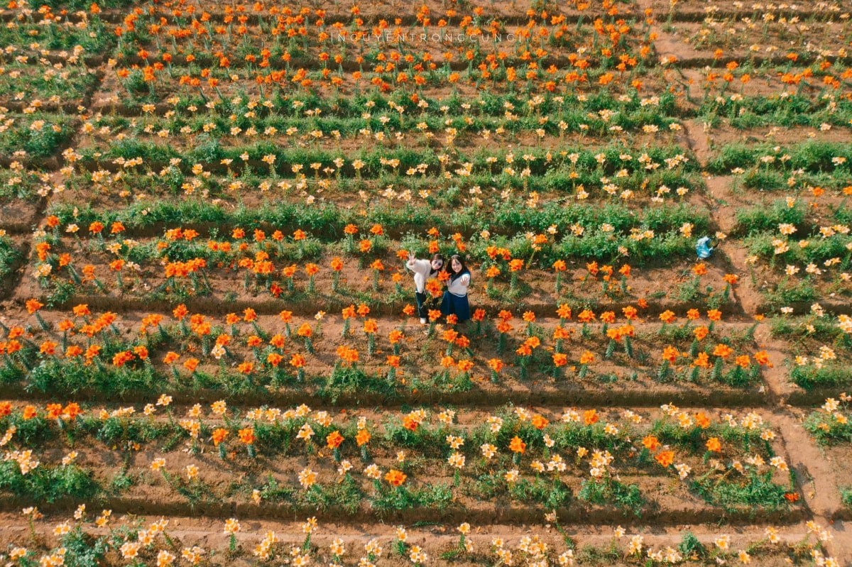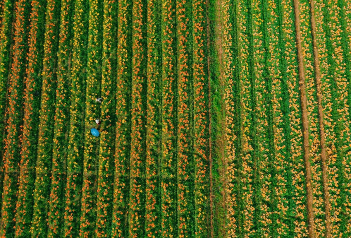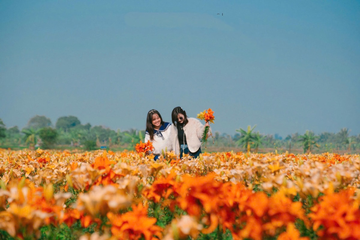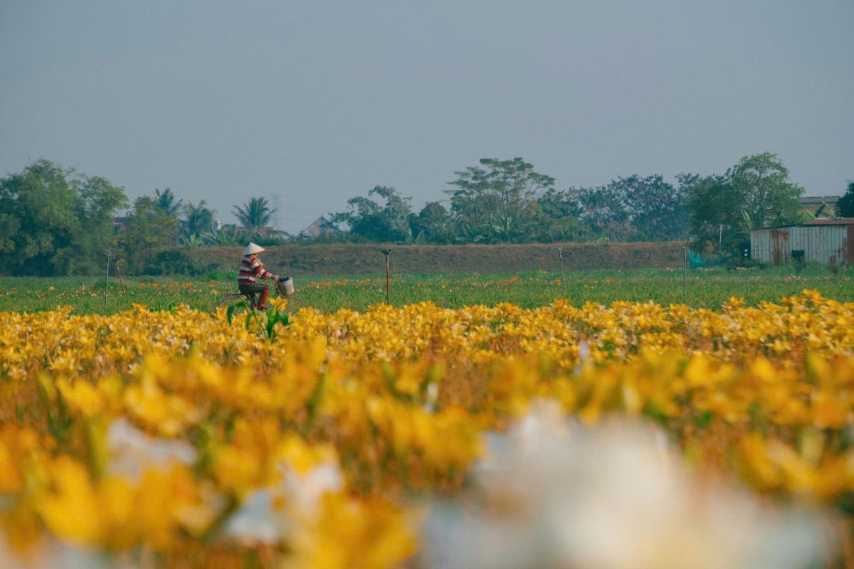 Cánh đồng hoa ly nhuộm vàng ven sông Kinh Thầy