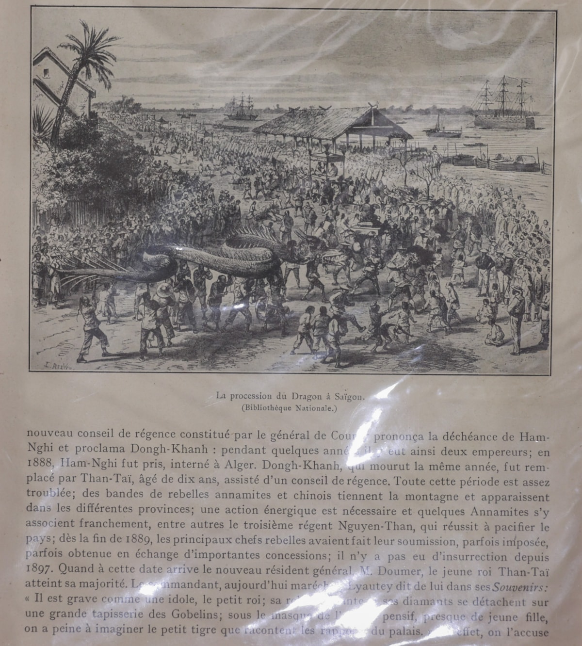 Nổi bật là bài báo với tranh vẽ chú thích Đám rước rồng ở Sài Gòn. Nội dung bài viết nói về giai đoạn biến động chính trị tại Việt Nam thời Pháp thuộc, về việc phế truất vua Hàm Nghi (1888) và lập vua Đồng Khánh, sau đó là vua Thành Thái.