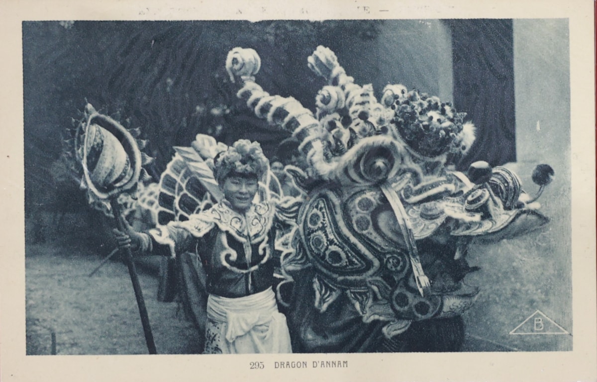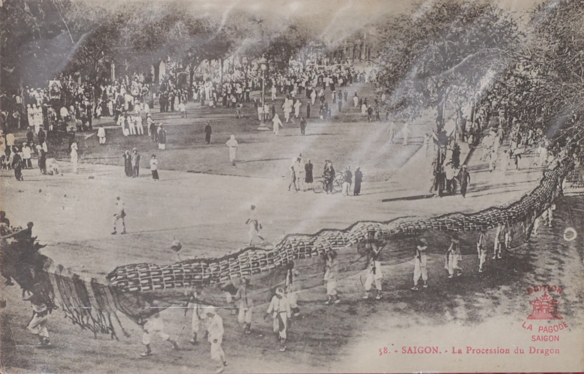 Người dân xem múa rồng vào đầu thế kỷ 20 trên đường Charner (nay là đường Nguyễn Huệ) tại Sài Gòn. Con rồng trong ảnh dài khoảng 50 m với trên 25 người múa.