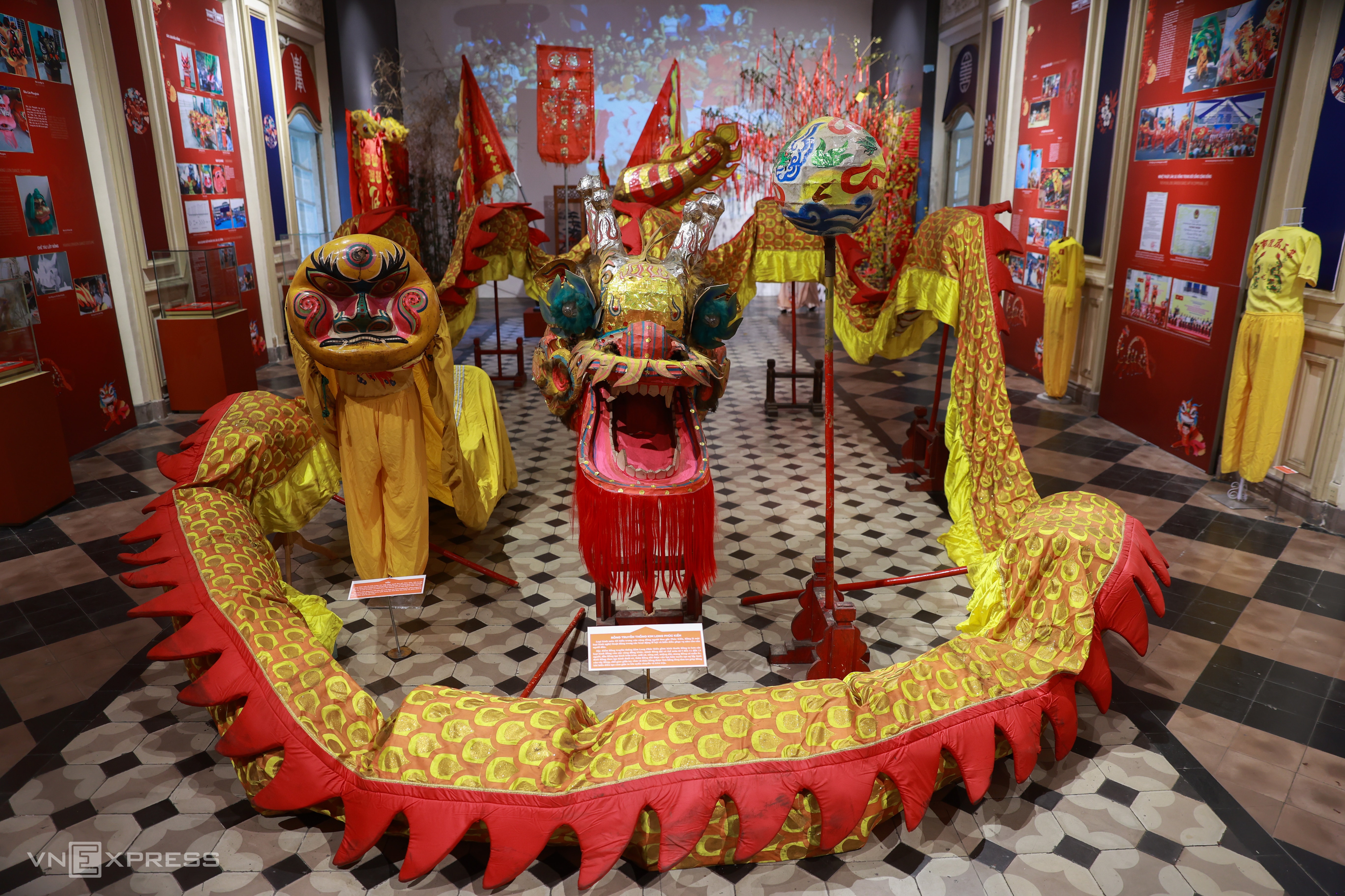 Bảo tàng Lịch sử TP HCM tổ chức chuyên đề Nghệ thuật Lân, Sư, Rồng của người Hoa ở TP HCM từ ngày 6/2. Tại triển lãm, nhiều hình ảnh, tư liệu, hiện vật về loại hình nghệ thuật này được trưng bày.