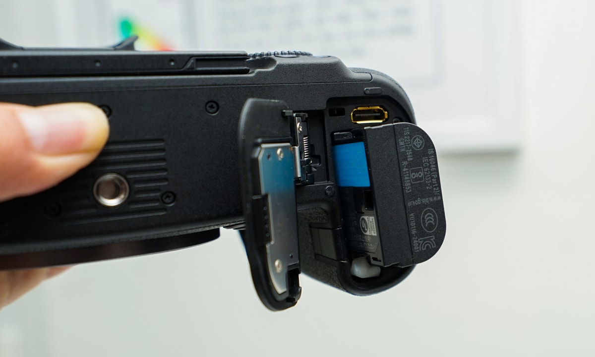 Một điểm mới khác là khe cắm thẻ nhớ. R6 Mark II dùng hai khe cắm SD, nhưng R6 Mark III loại bỏ một khe và thay bằng CFexpress Type B, nhằm giúp máy xử lý băng thông video 7K RAW chụp tốc độ cao 40 fps (khung hình/giây). Trong khi đó, khe SD UHS-II thứ hai cung cấp tùy chọn sao lưu, ghi tràn hoặc sử dụng thẻ SD cho việc chụp ảnh thông thường, quay video ở định dạng nén. Dù vậy, việc trang bị CFexpress Type B cũng buộc người dùng phải chi thêm tiền để mua loại thẻ này nếu muốn khai thác hết khả năng của máy, khiến chi phí tổng thể bị "đội" lên. Tại Việt Nam, các mẫu CFexpress Type B hiện có giá trên ba triệu đồng cho dung lượng từ 128 GB.