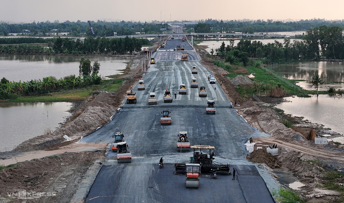 Cao tốc Cần Thơ – Cà Mau dài gần 111 km đã hoàn thành hơn 90% sau gần ba năm thi công và đang bước vào giai đoạn nước rút để kịp thông xe ngày 19/12.