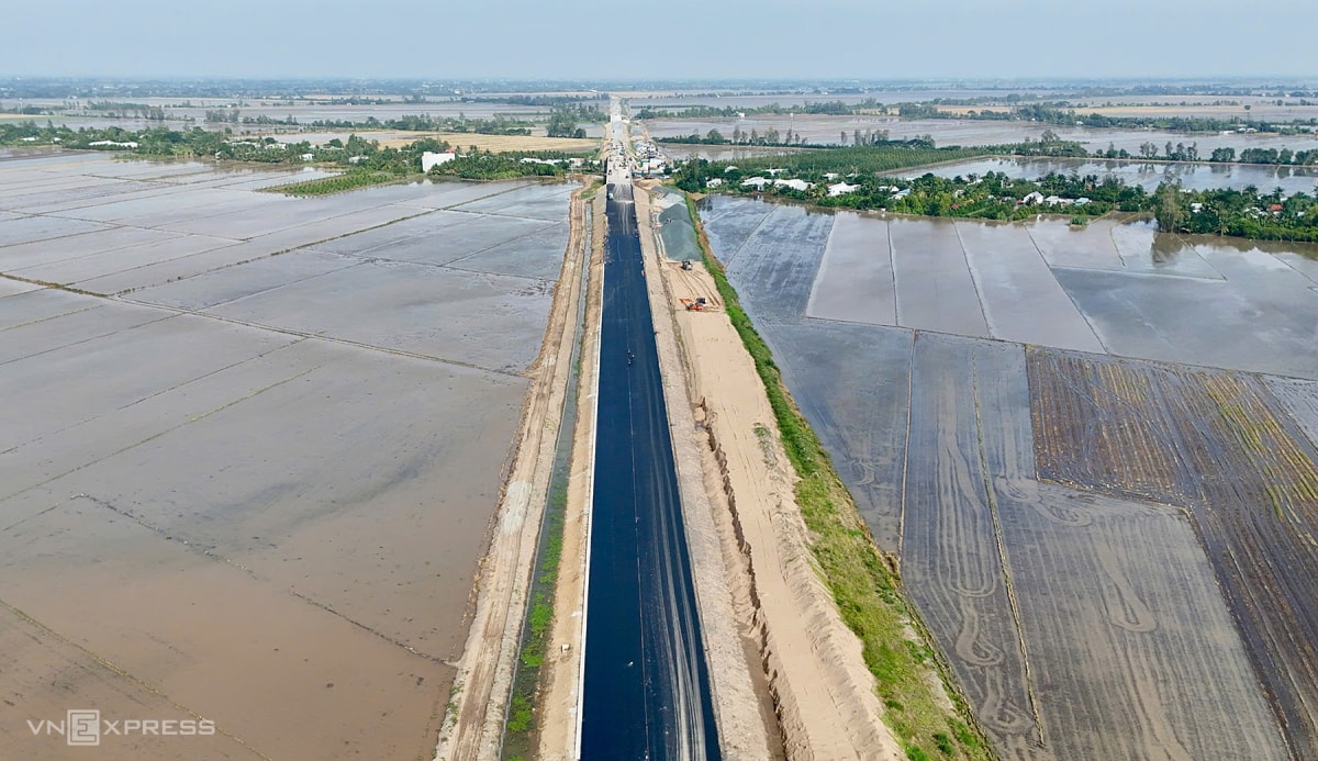 Đoạn cao tốc qua xã Vĩnh Hanh, tỉnh An Giang vừa được thảm nhựa.
