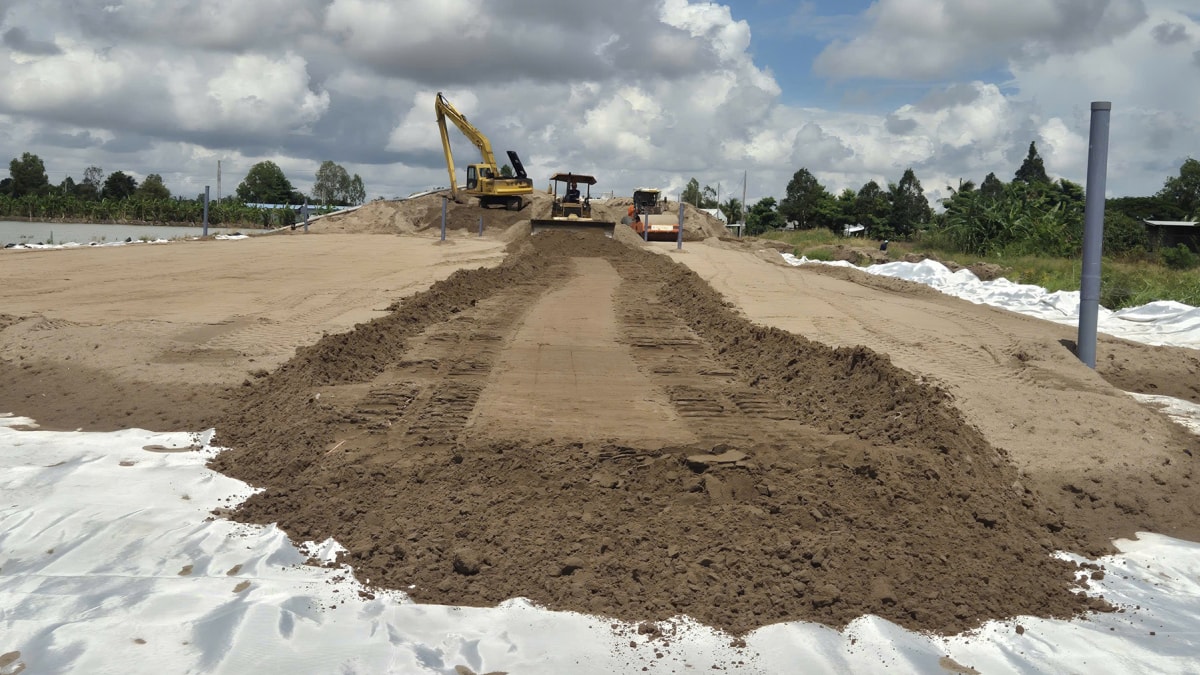 Theo Ban Quản lý dự án đầu tư xây dựng công trình giao thông và nông nghiệp TP Cần Thơ (chủ đầu tư), trên toàn tuyến chính hiện đang triển khai xử lý nền đất yếu bằng phương pháp đóng bấc thấm kết hợp đắp cát gia tải.