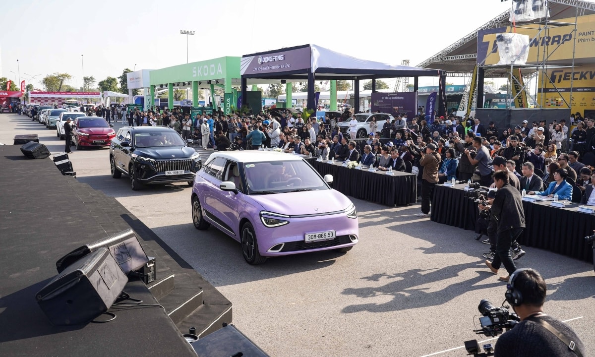 Trong ảnh là dàn xe hơn 20 chiếc từ tất cả các hãng tham dự "catwalk" qua khán đài trung tâm, tạo nên một trong những tiết mục đặc biệt nhất ở VnMS 2025, xóa bỏ hình ảnh lối mòn về những buổi khai mạc triển lãm thuần phát biểu, thiếu hấp dẫn. Ảnh: Hoàng Giang