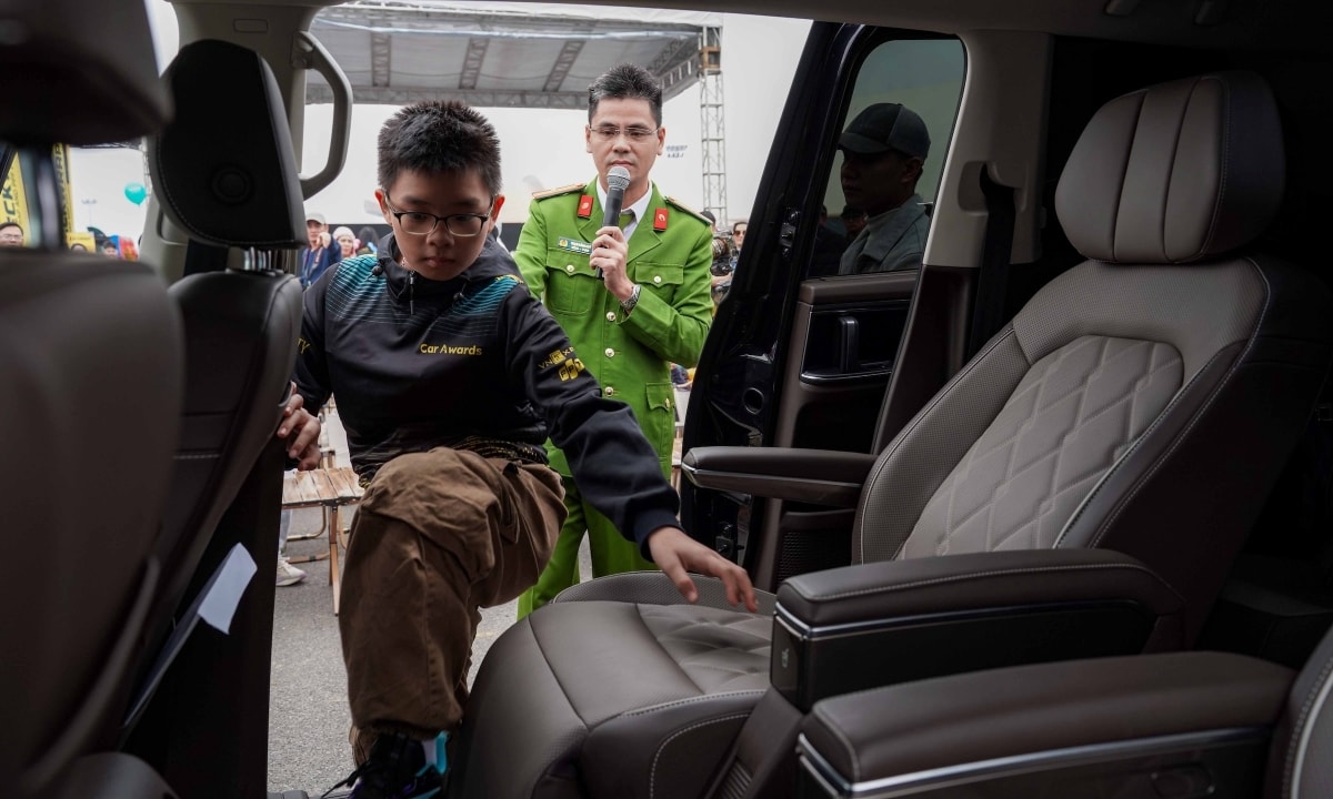 VnMS 2025 còn mang đến một chương trình đặc biệt: "Thoát hiểm - thoát nạn trên xe" dành cho trẻ em. Thiếu tá Phạm Đăng Quý, cán bộ Đội Cảnh sát phòng cháy chữa cháy và cứu nạn cứu hộ khu vực số 20, Công an Hà Nội, đảm trách phần giải thích, hướng dẫn cho các bé kỹ năng phát tín hiệu kêu cứu, thoát khỏi xe khi không may bị bỏ rơi trên ôtô.